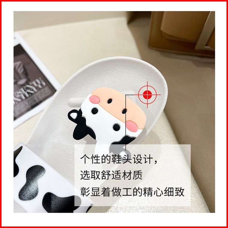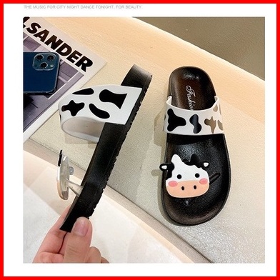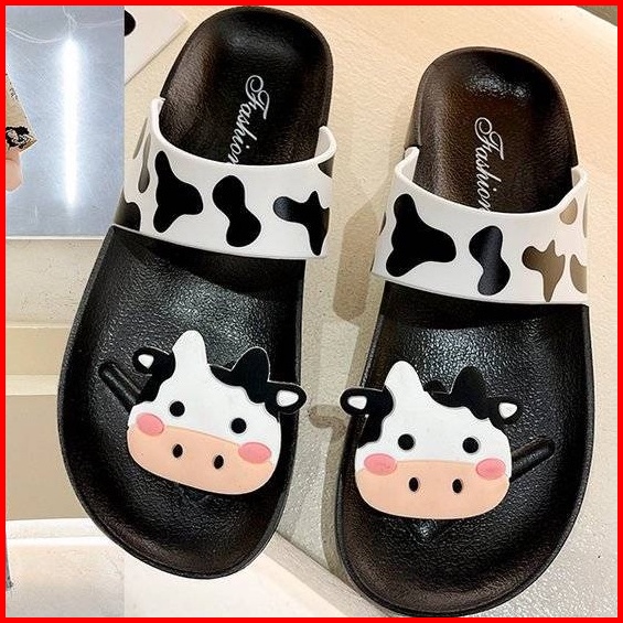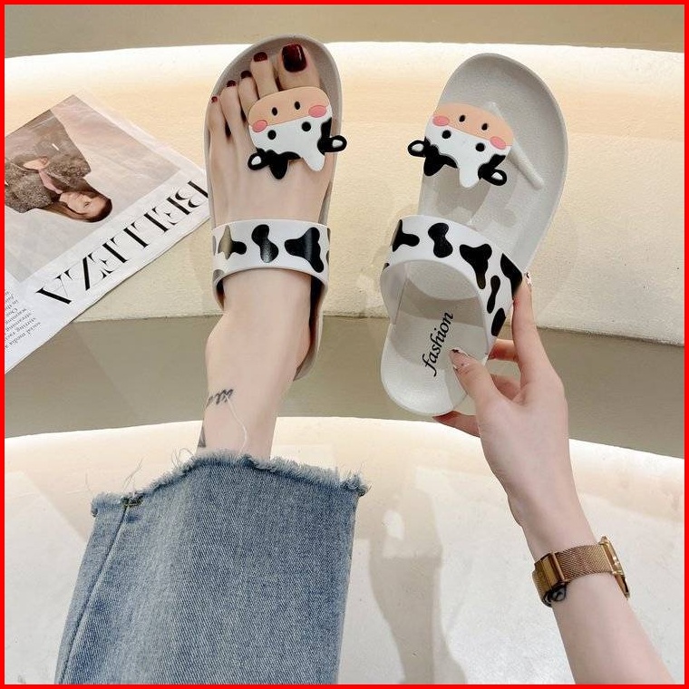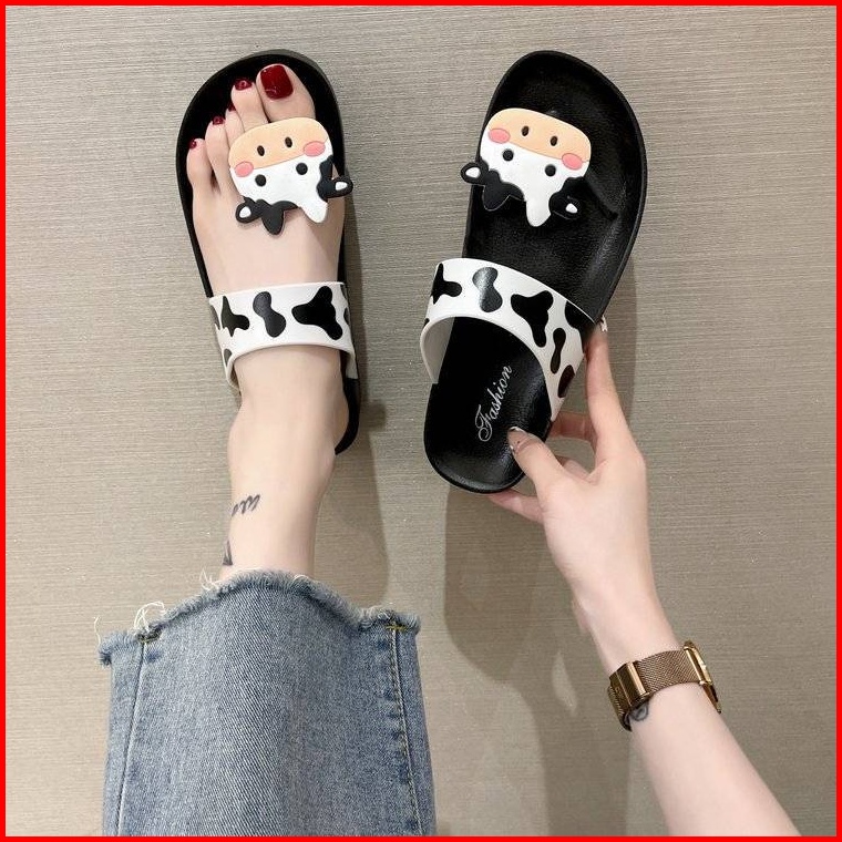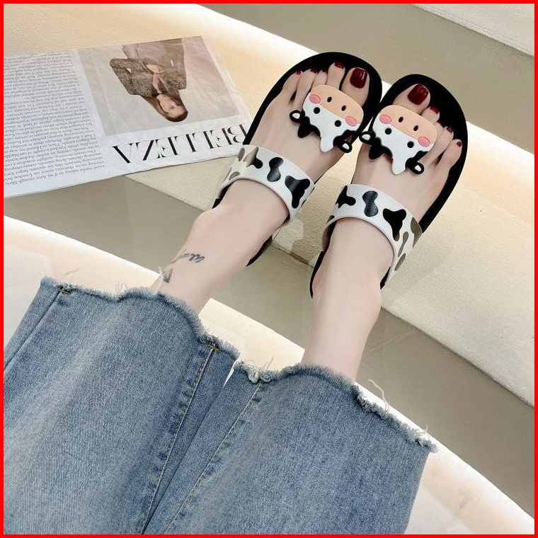 Idealife40 Sandal Pvc Wanita Motif Cow Sapi Hitam Putih Sendal Wanita Karet Jepit Kekinian