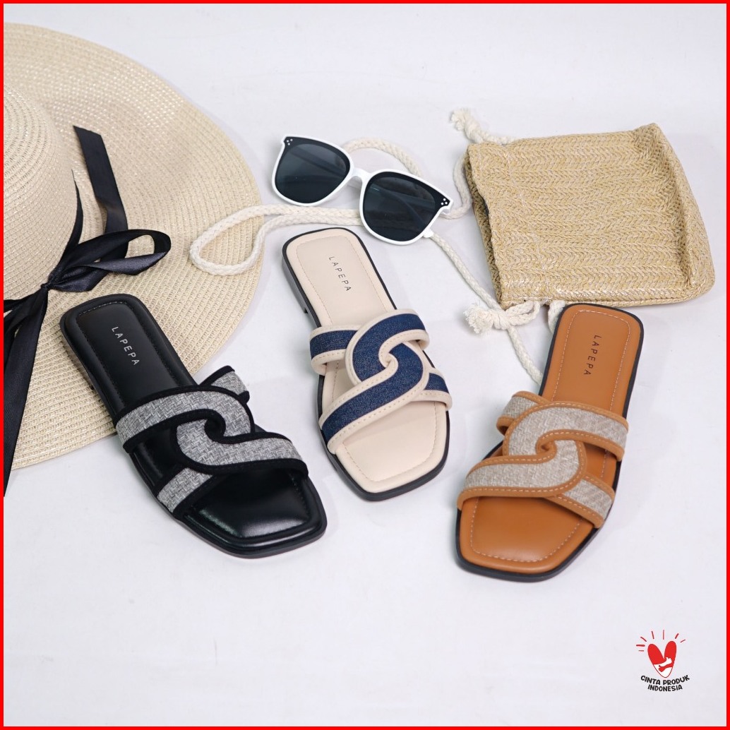 Lapepa - Olla Sandal Flat Jeans Wanita Sendal Slop Teplek Selop Cewek Slip On Kekinian