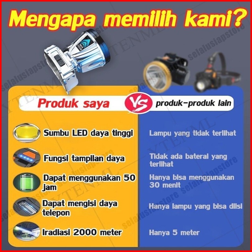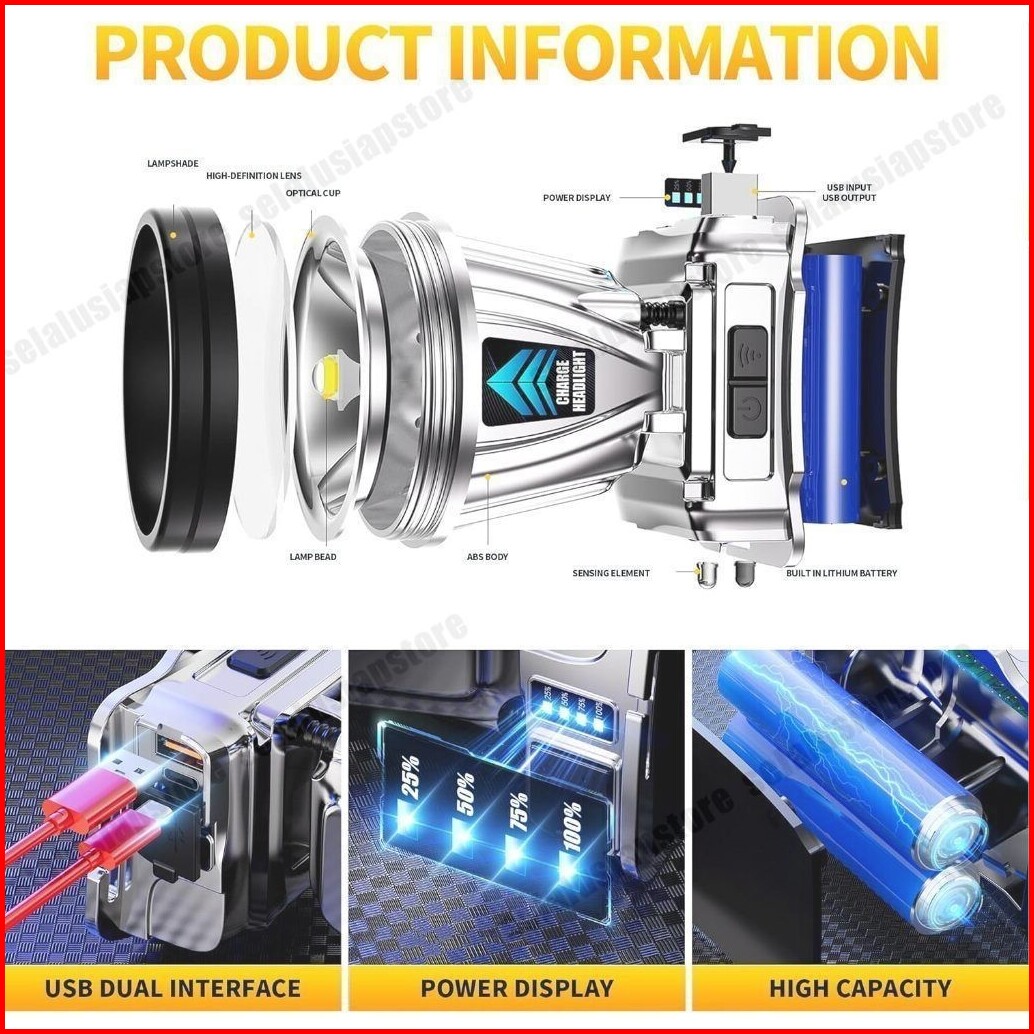 Sensor500w Senter Kepala Headlamp Super Terang Outdoor Camping Berburu Hiking Lampu Senter Kepala Usb Rechargeable Water