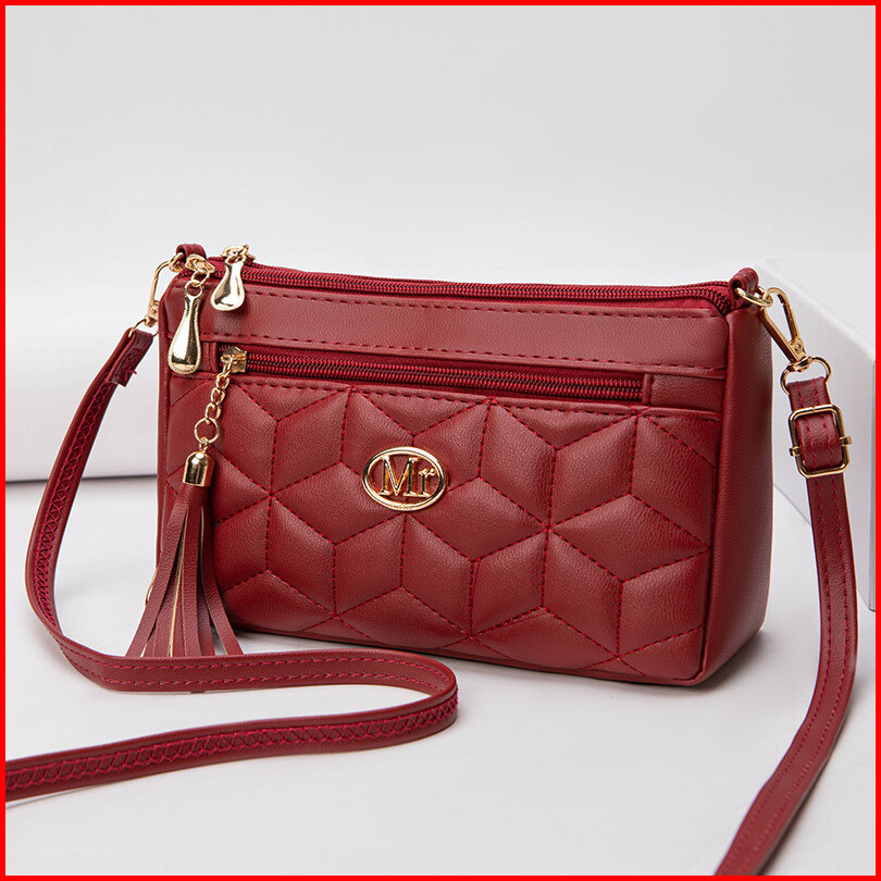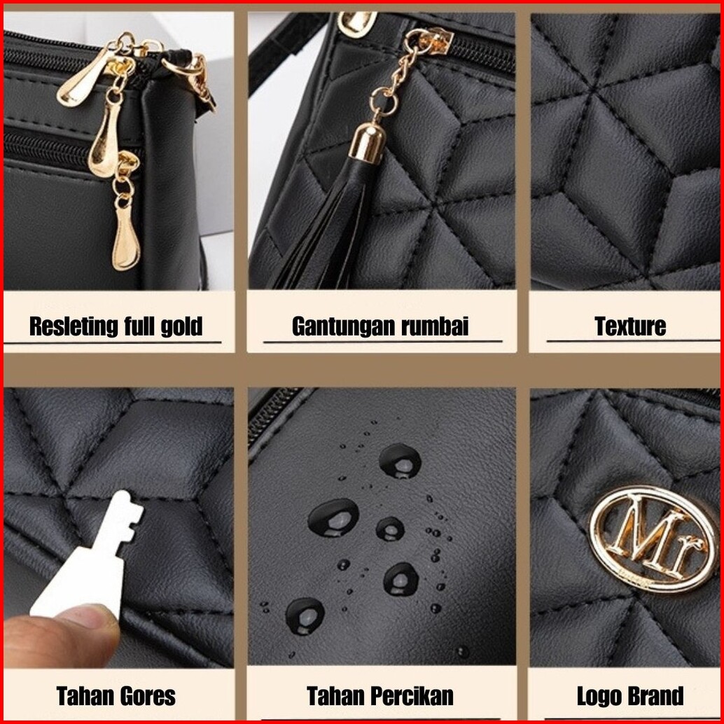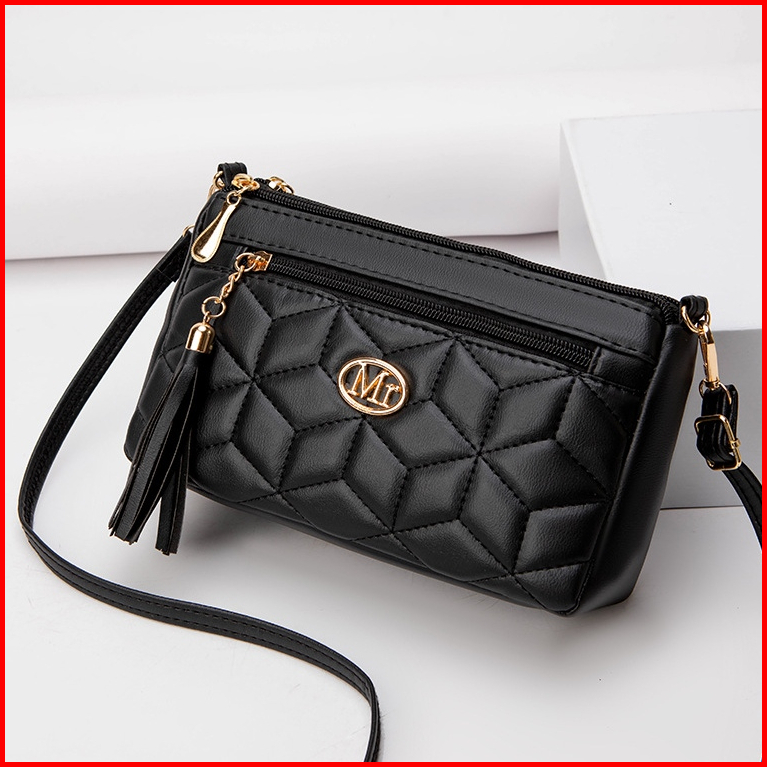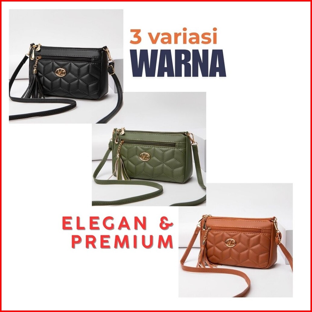 Tas Selempang Wanita Sling Bag Korea Kulit Hitam Ambergia Premium Shoulder Bahu Remaja Cewek Murah Kekinian Lucu Fashion