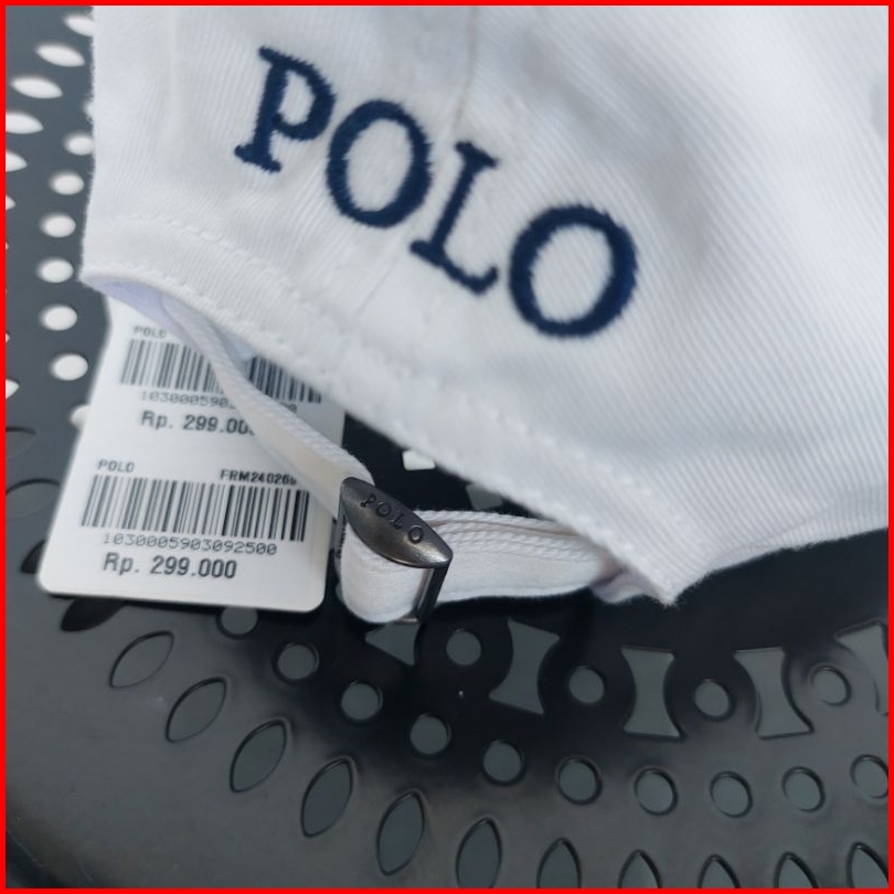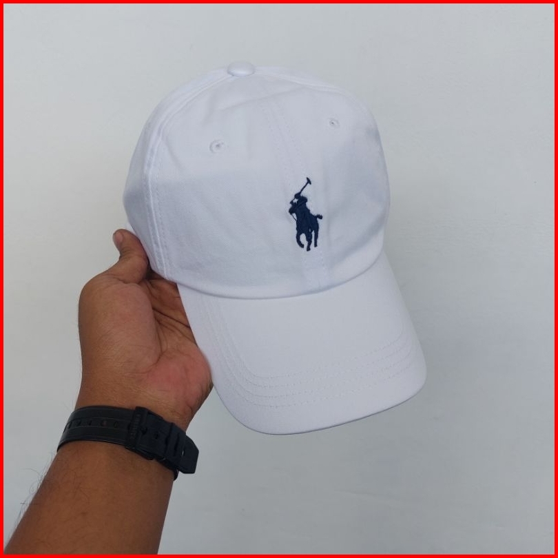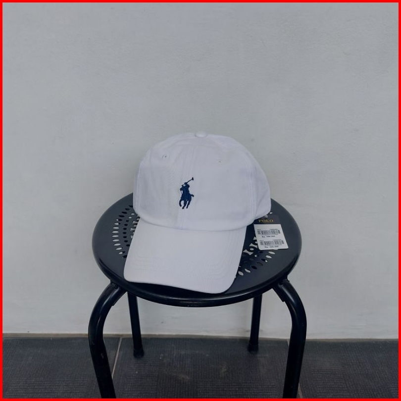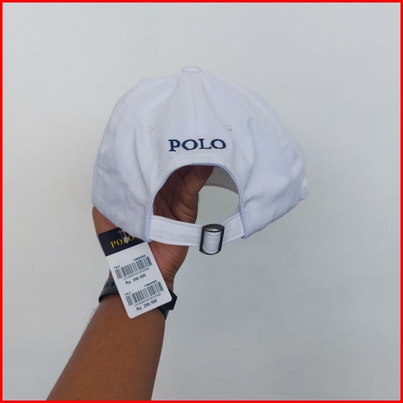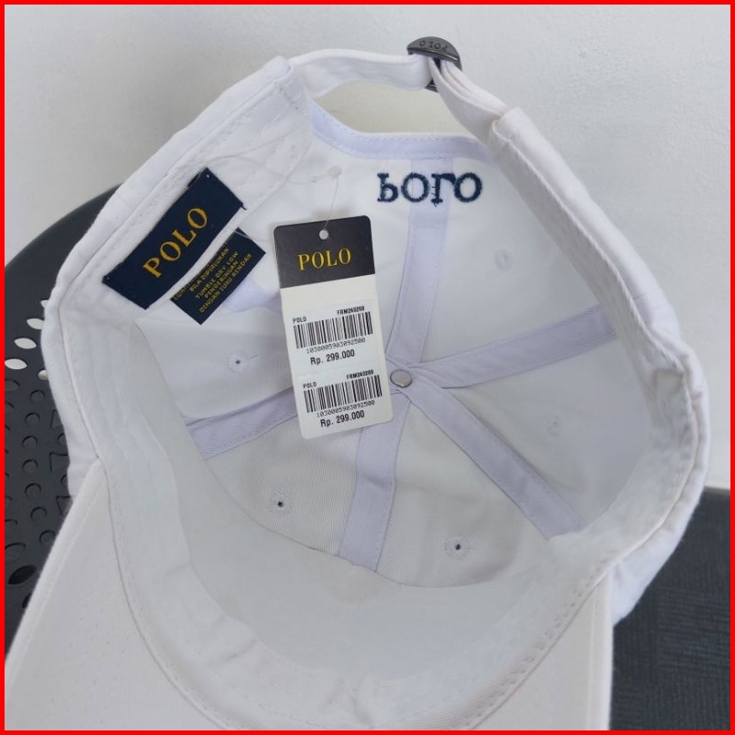 Topi Caps Polo Strap Kain - Putih Logo Navy - Original Bnwt