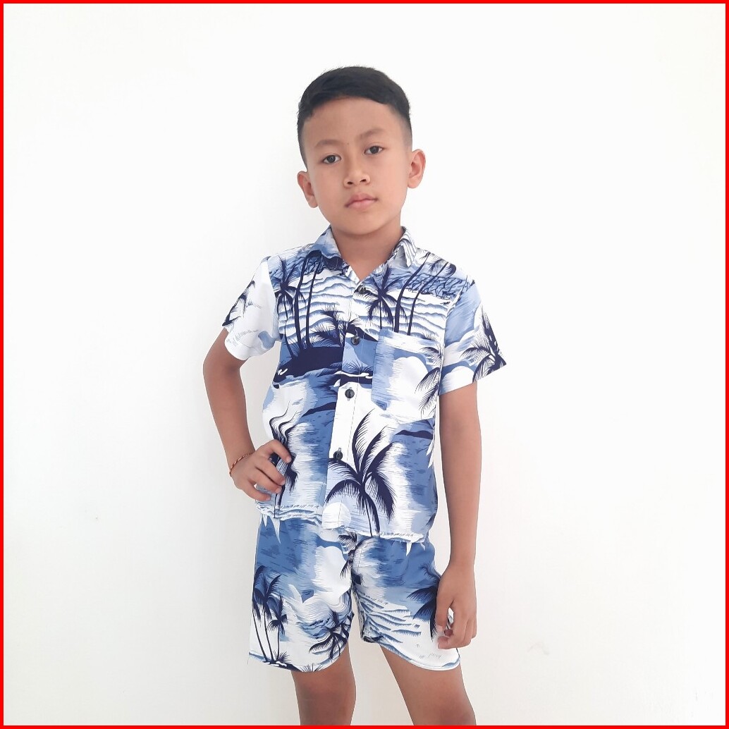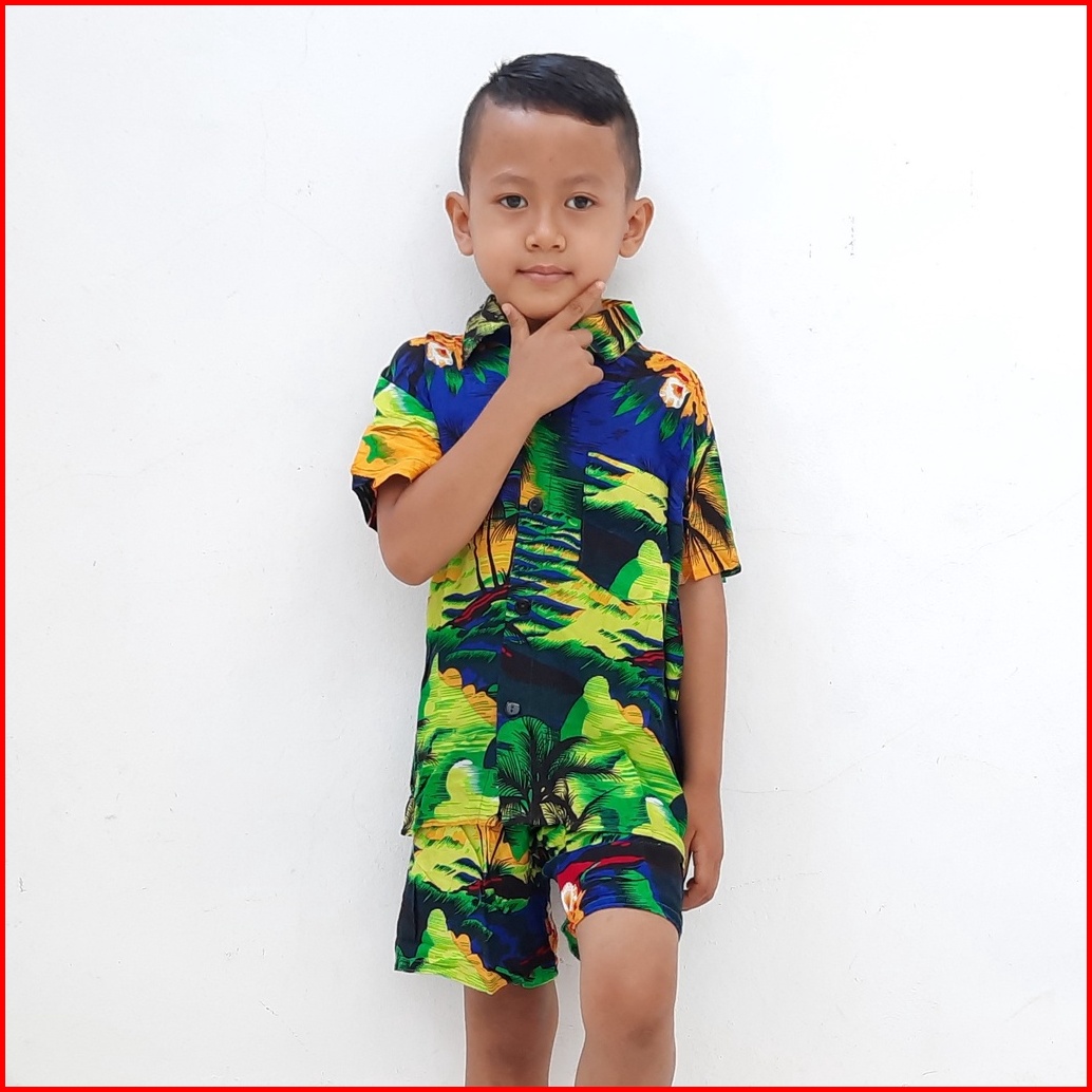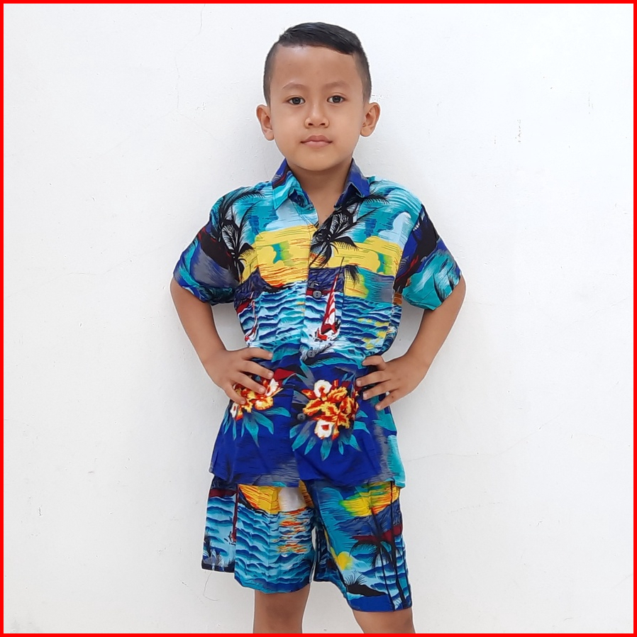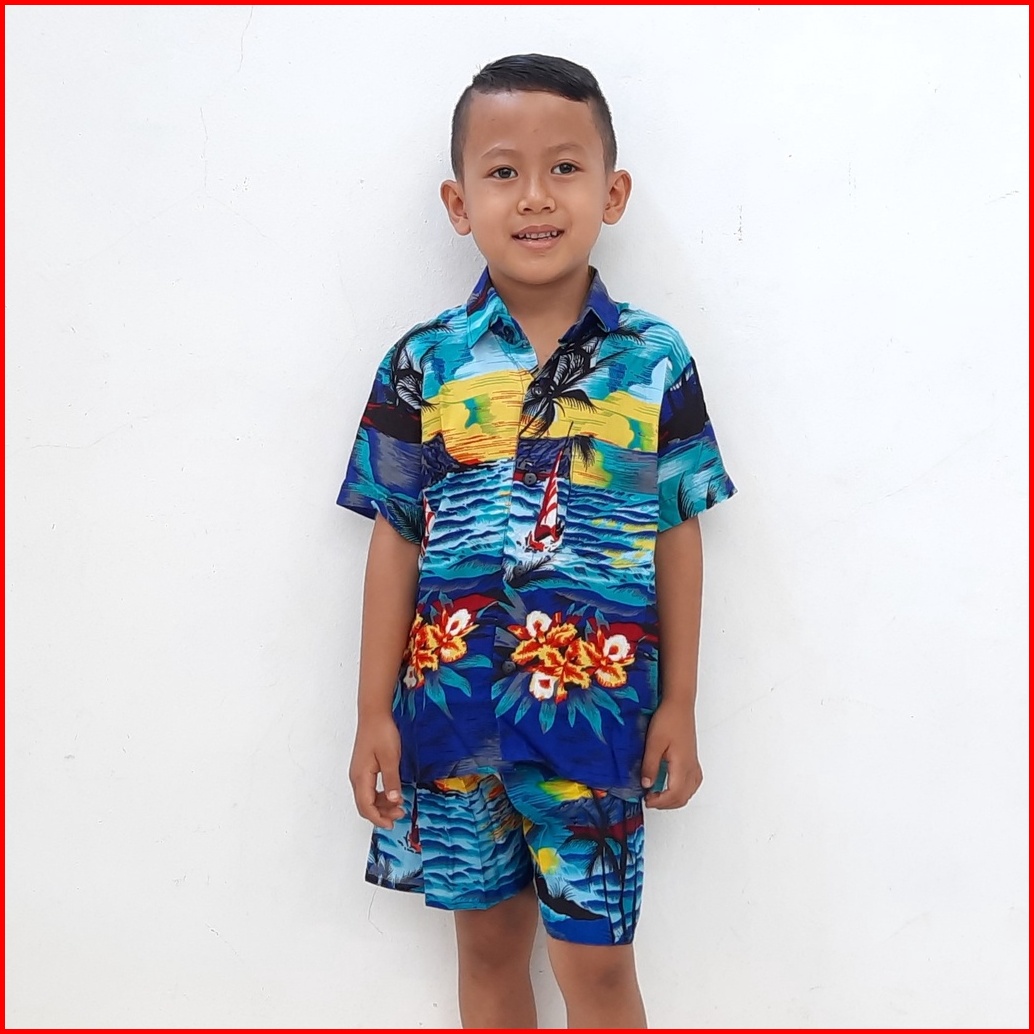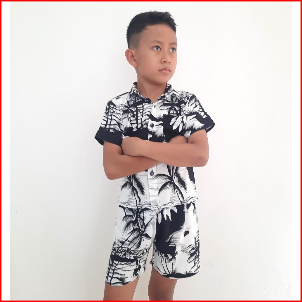 Setelan Kemeja Pantai Anak Motif Kelapa Bahamas