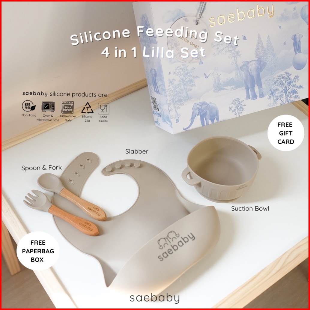 Sae Lilla Set Baby Feeding Silicone Set Hampers Bayi Peralatan Makan Bayi Hampers Lahiran Alat Makan Bayi