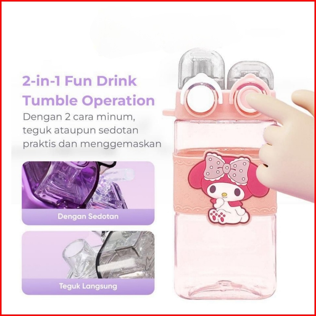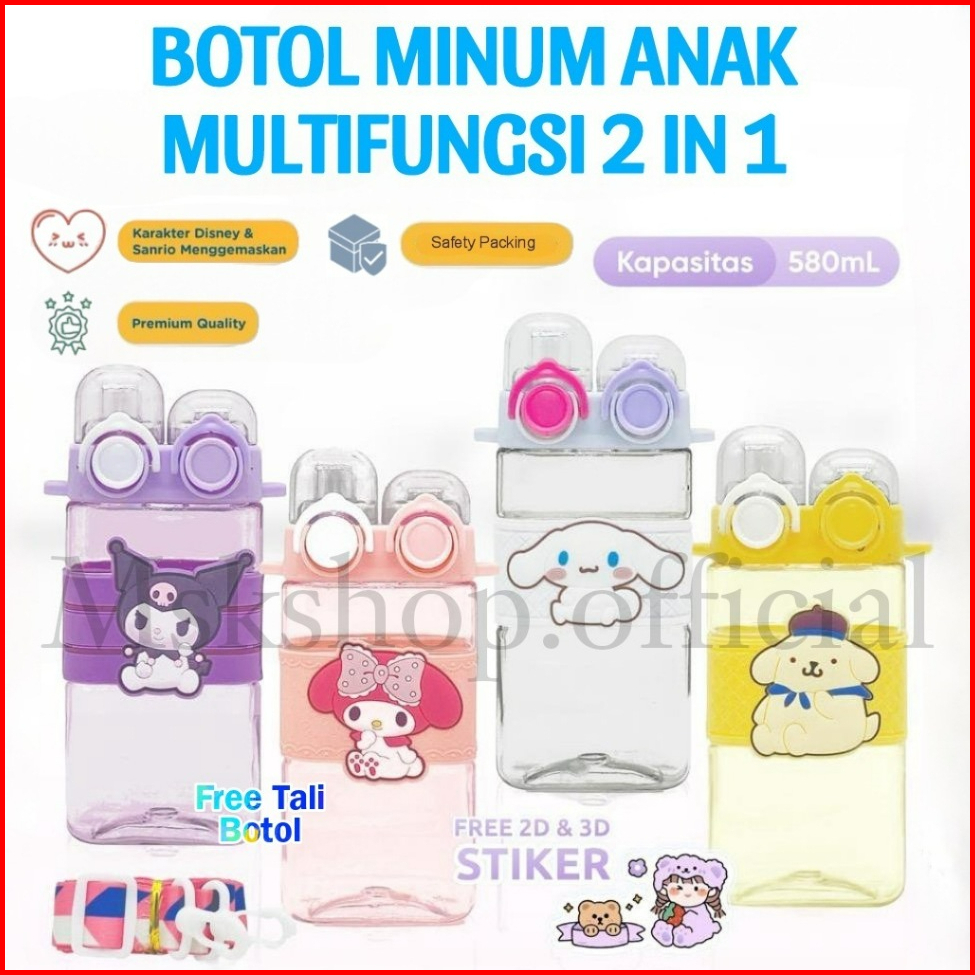 Botol Minum Anak Karakter Multifungsi 2in1 580ml Botol Minum Anak Sekolah Sedot Teguk Motif Lucu