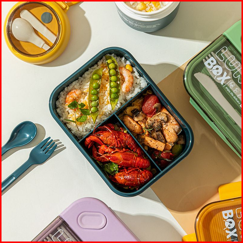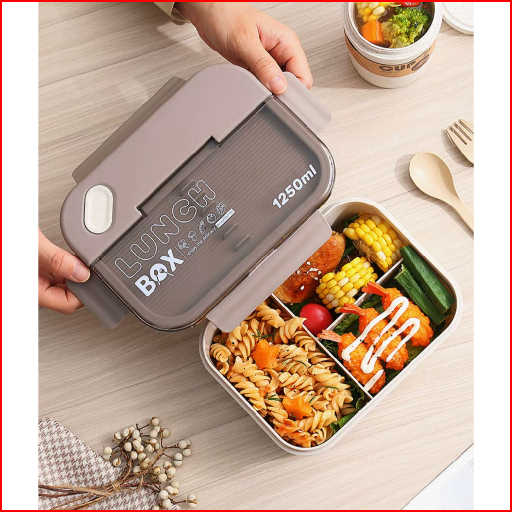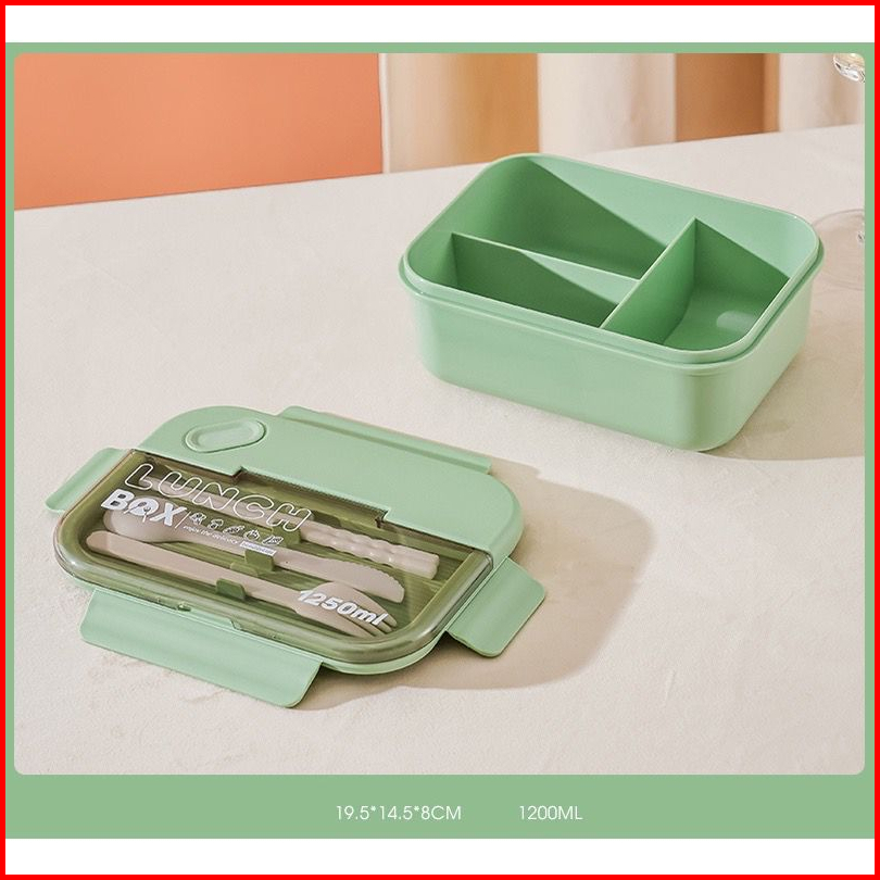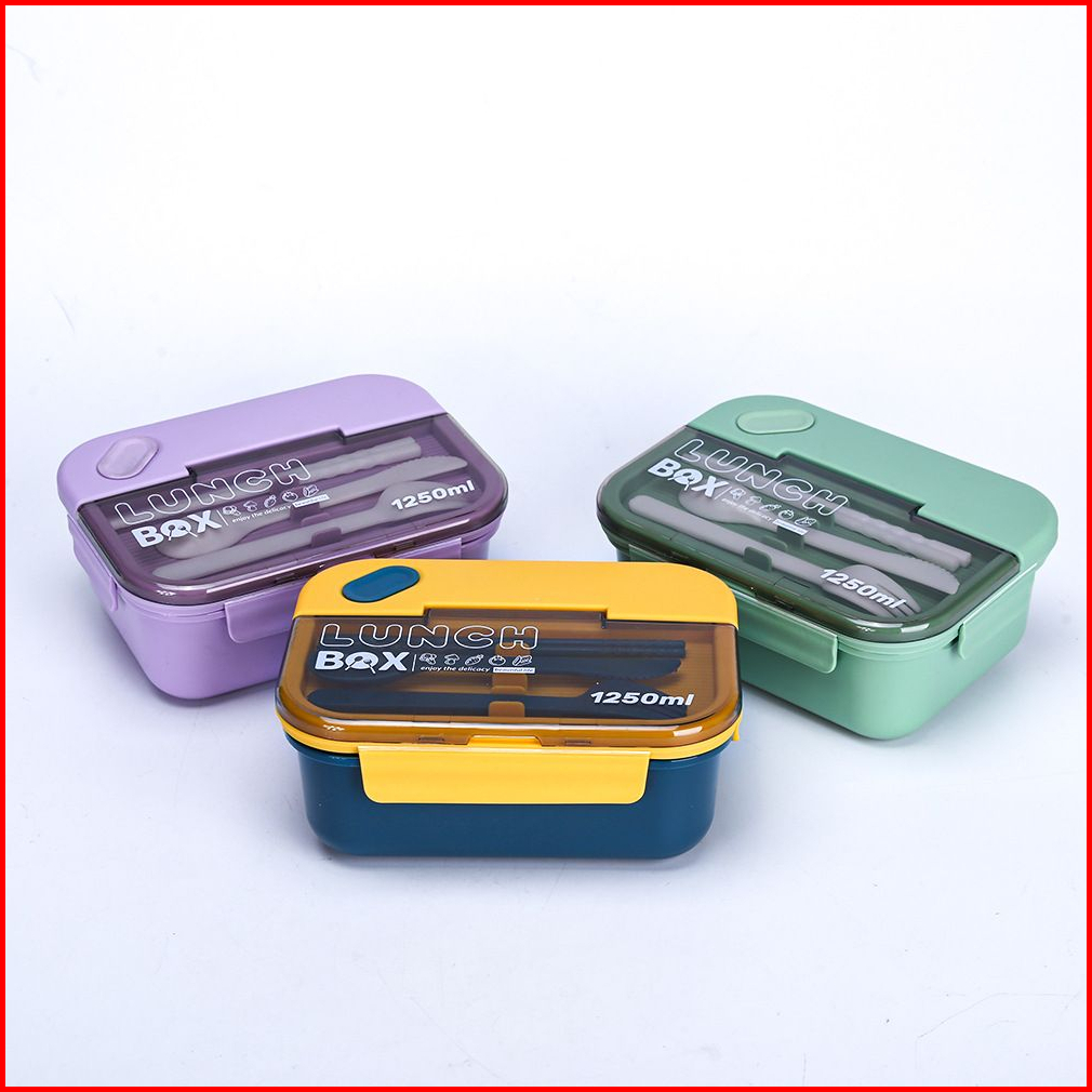 Lunch Box Set Kotak Bekal Makan 1250 Ml Bpa Free Anti Tumpah Free Sendok Garpu Sumpit 3 Sekat