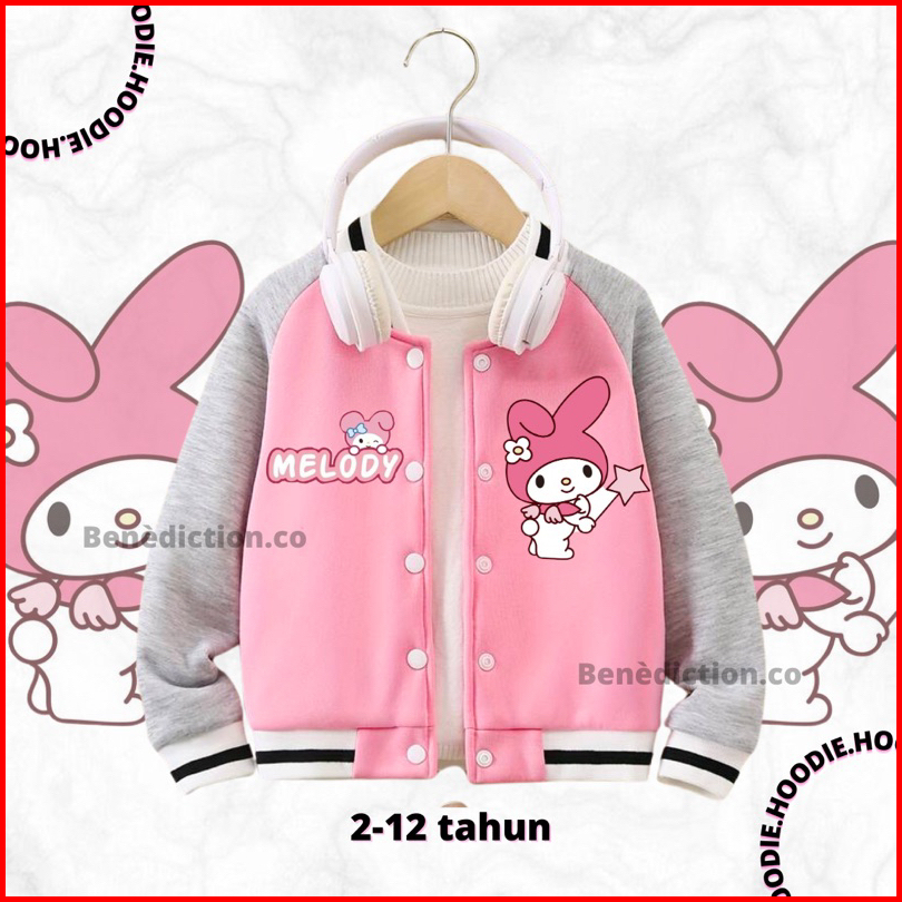 Jaket Varsity Anak Perempuan My Melody Umur 2 3 4 5 6 7 8 9 10 11 12 Tahun Jaket Baseball Anak Cewe Unisex Hoodie Swaete