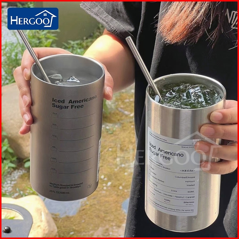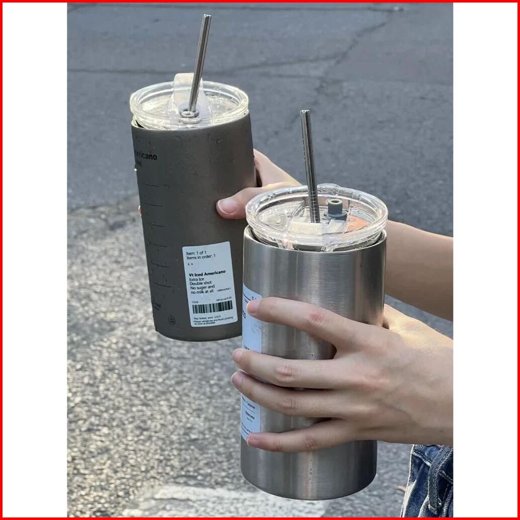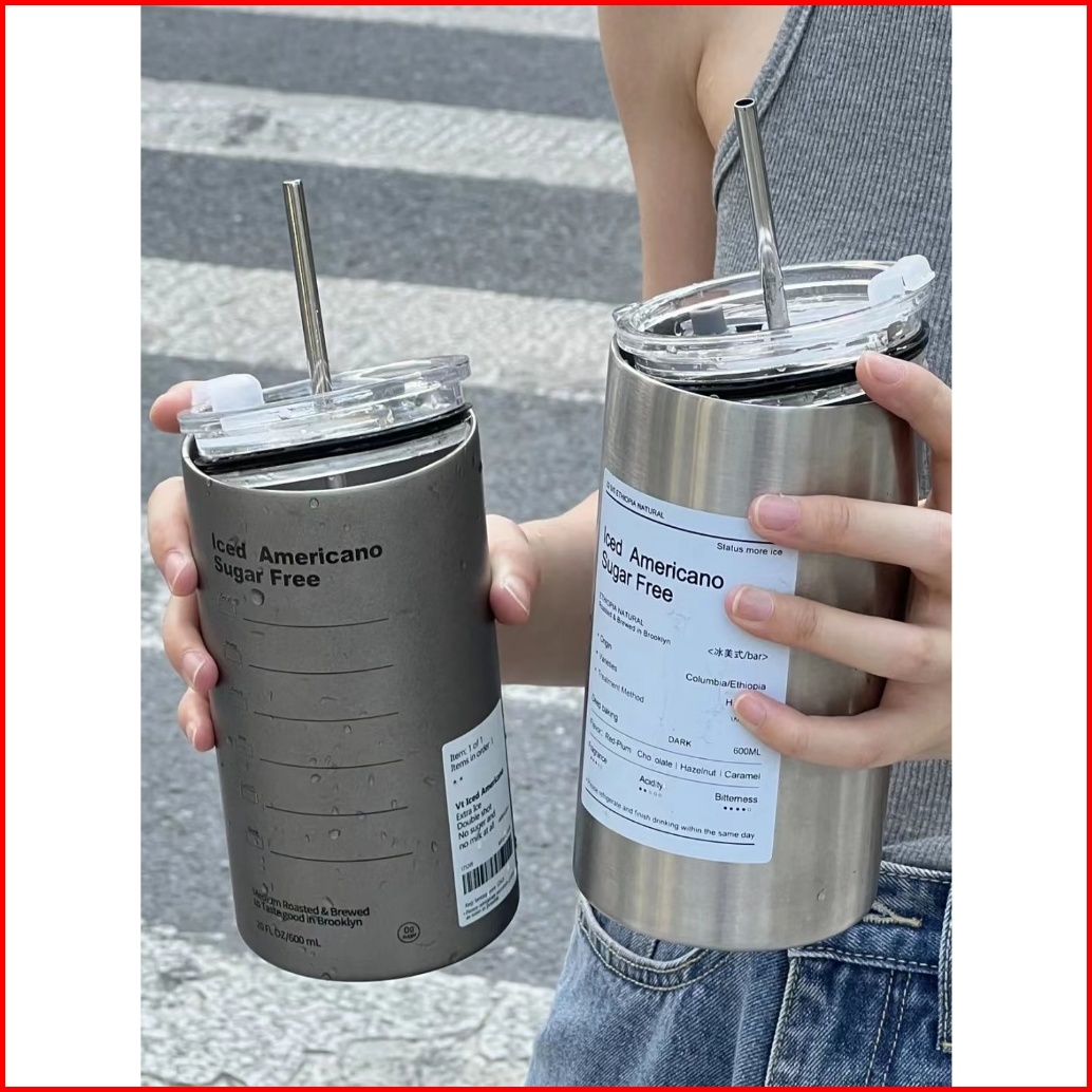 Ready Stock600ml Botol Minum Stainless Steel Sedotan Cangkir Boto Minum Kopi Sedotan Cangkir Thermos Kopi Bahan Stainles
