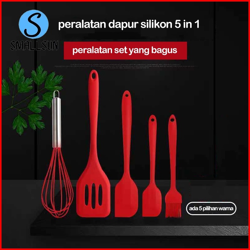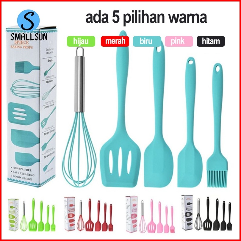 Spatula Set Alat Masak 5 In 1 Sutil Scrap Kocokan Silicone Silikon