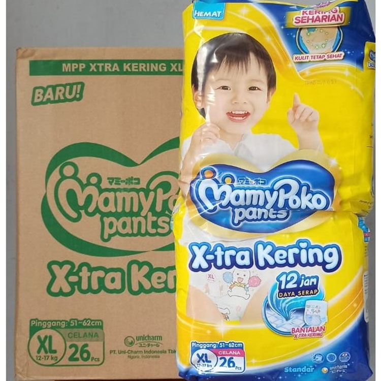 MamyPoko Pants 1 Dus Karton S38 M32 L28 XL26 XXL24 Popok Celana 4 Ball