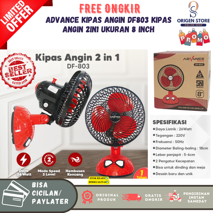 Gratis Ongkir Advance Kipas Angin DF803 Kipas Angin 2IN1 ukuran 8 inch