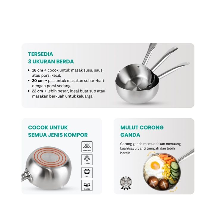 PANCI STAINLESS STEEL OBLEROME PANCI SUSU REBUS MIE AIR JAPANESE COOKWARE TERBARU
