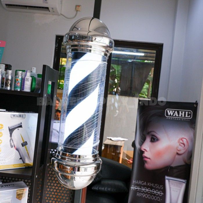 Barberpole Lampu Barbershop Barber Pole Premium 75CM - BIRU MERAH -