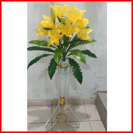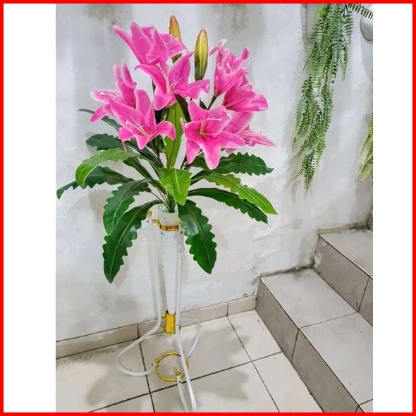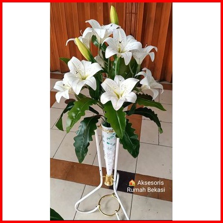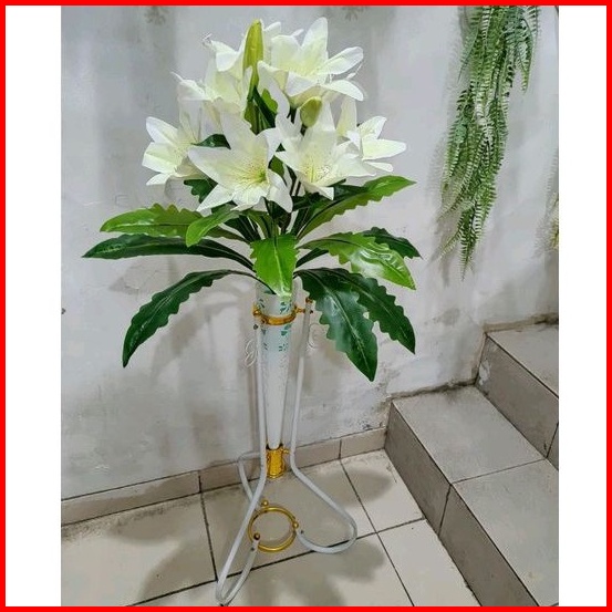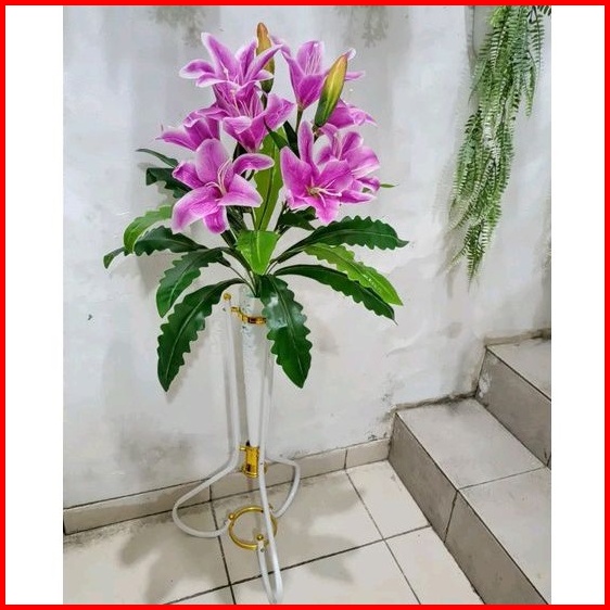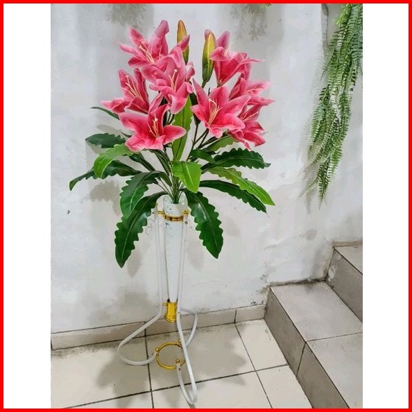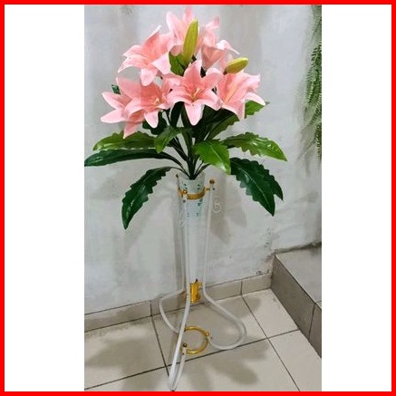 1 Set Rangkaian Bunga Tiger Lilly Latex Kualitas Premium Bunga Amarilis Latex Dengan Pot Standing Besi