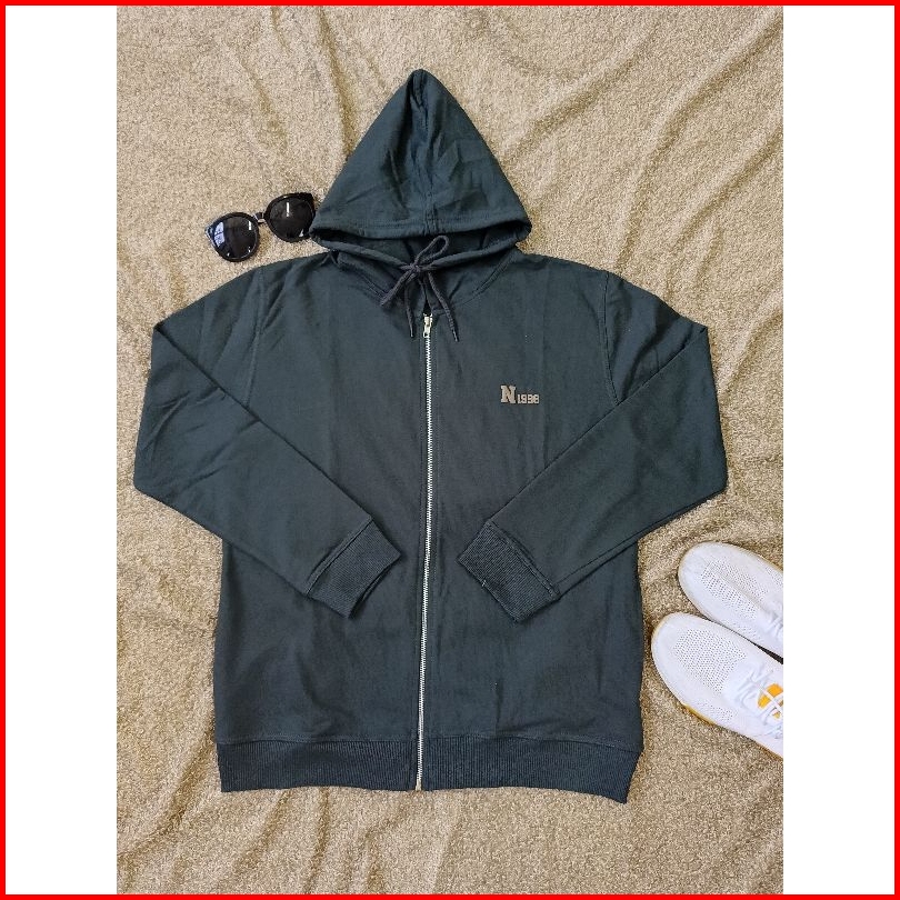 M02 Jaket Sewater Hoodie Zipper Polos Bahan Babyterry Katun Pria Wanita