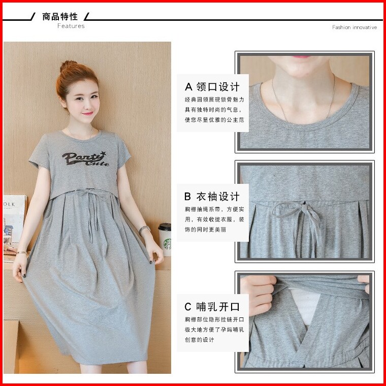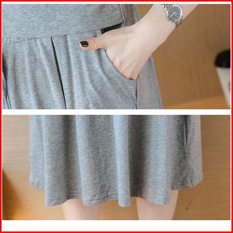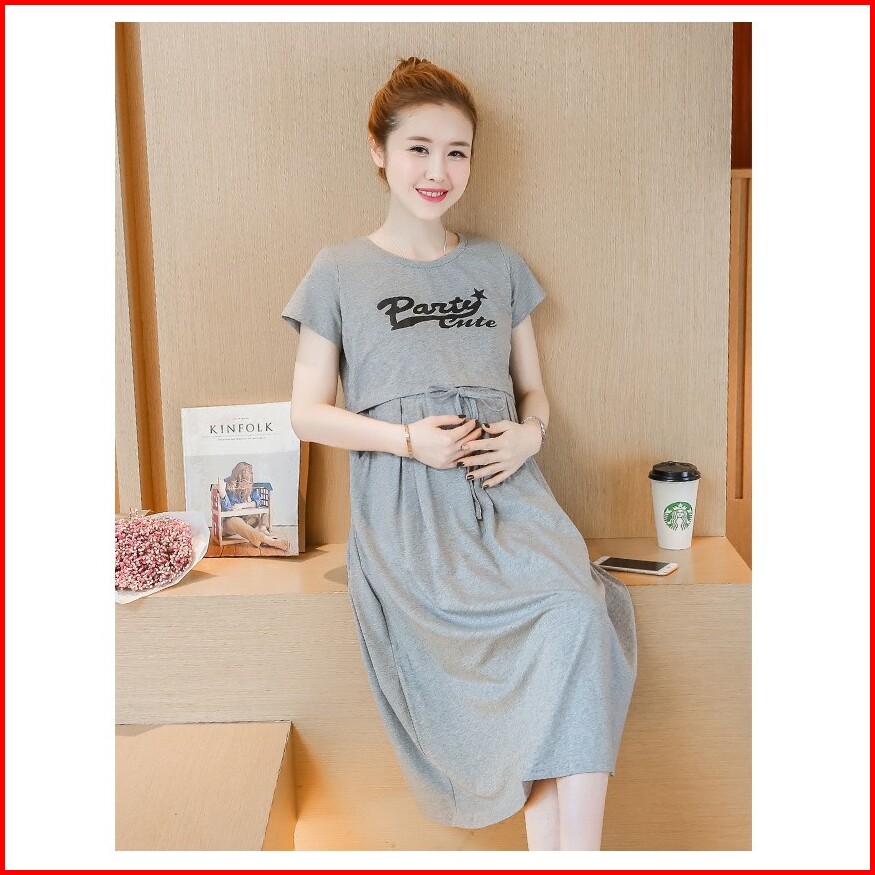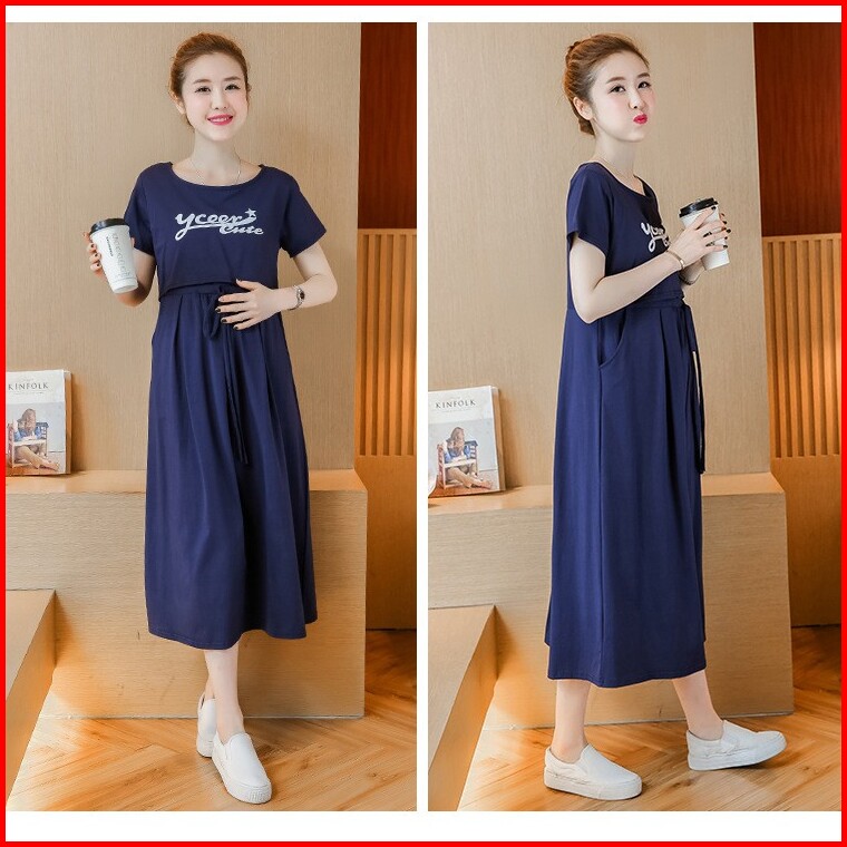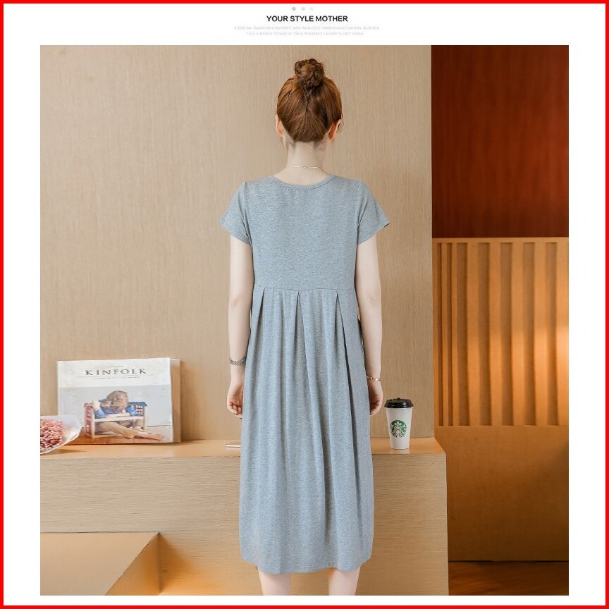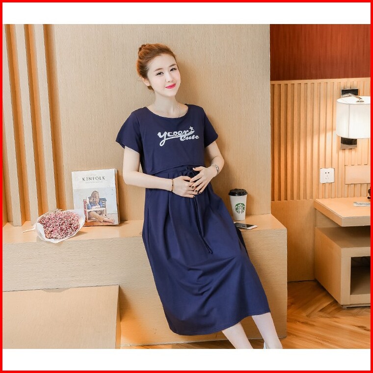 Hyren.id P25 Dress Ibu Hamil Menyusui Katun Import Baju Terusan Maternity Murah Fashion Santai Abu Navy