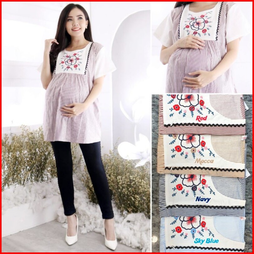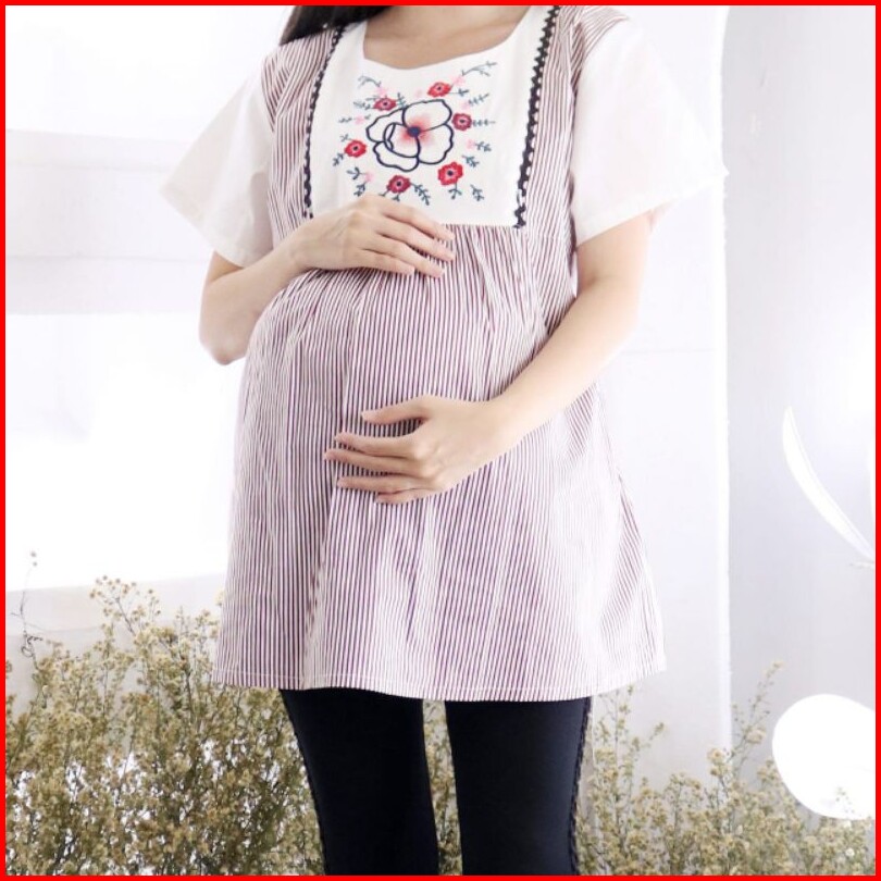 Baju Hamil Stripe Calista Lengan Pendek