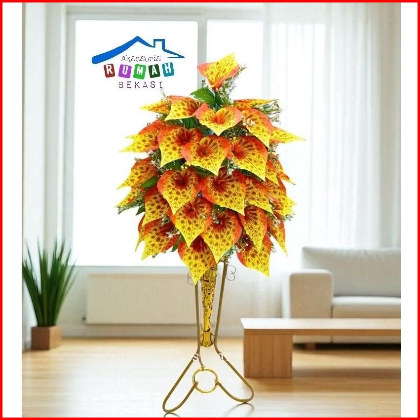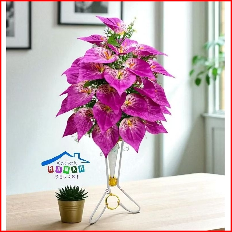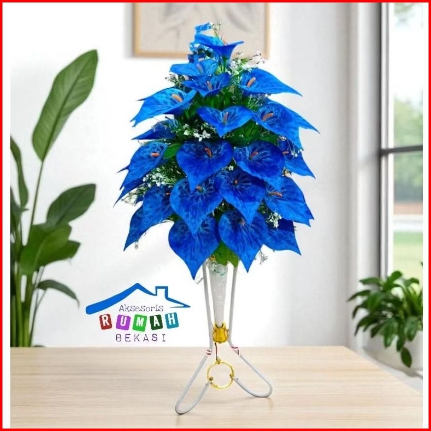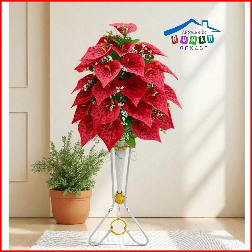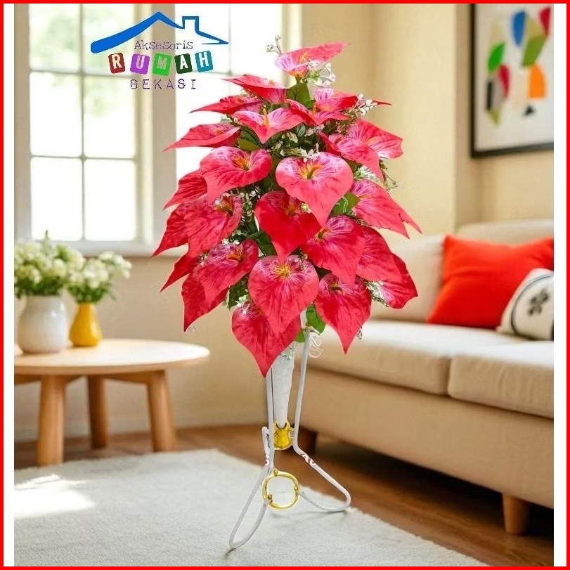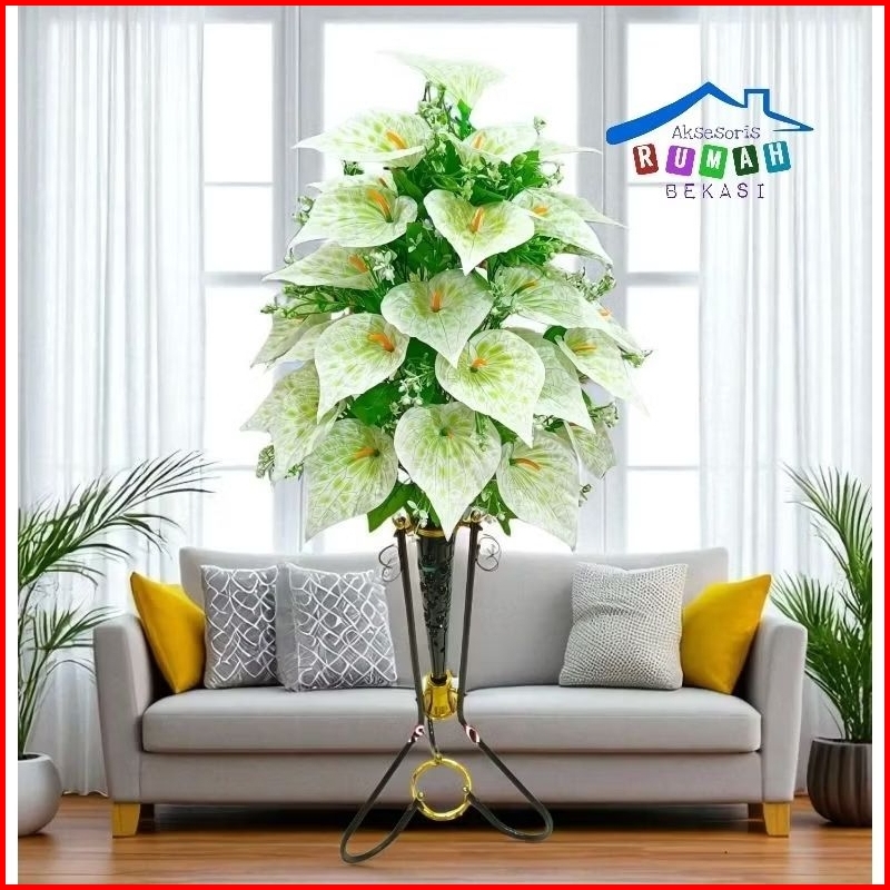 Rangkaian Bunga Aron Panda 36 Kuntum Dengan Pot Standing Besi