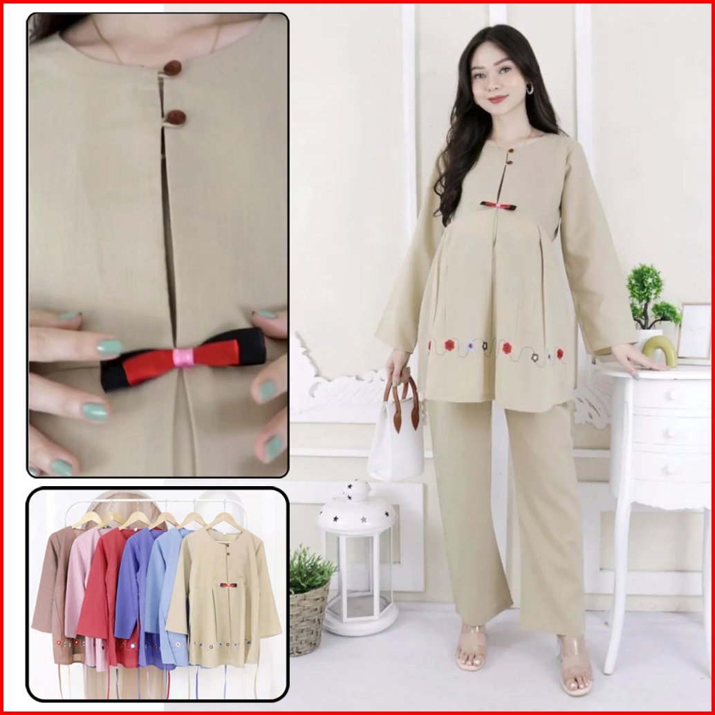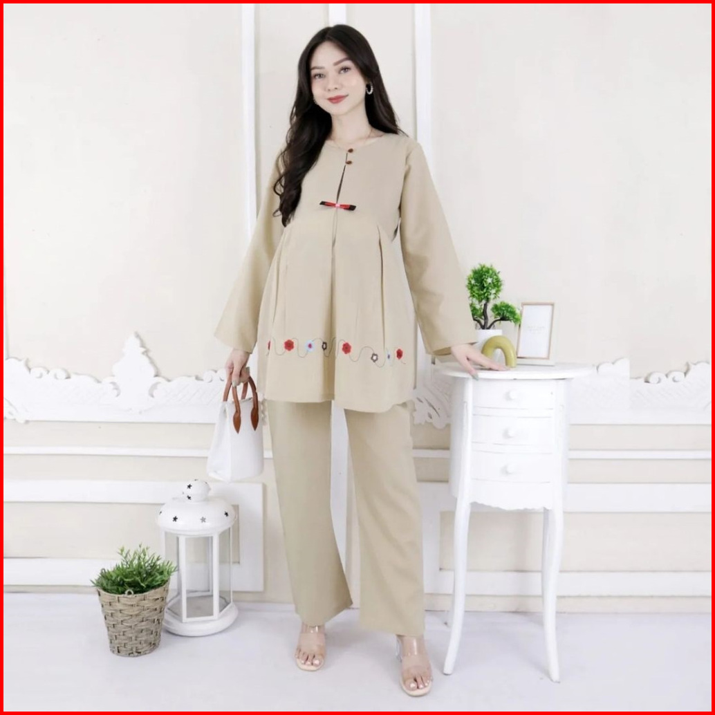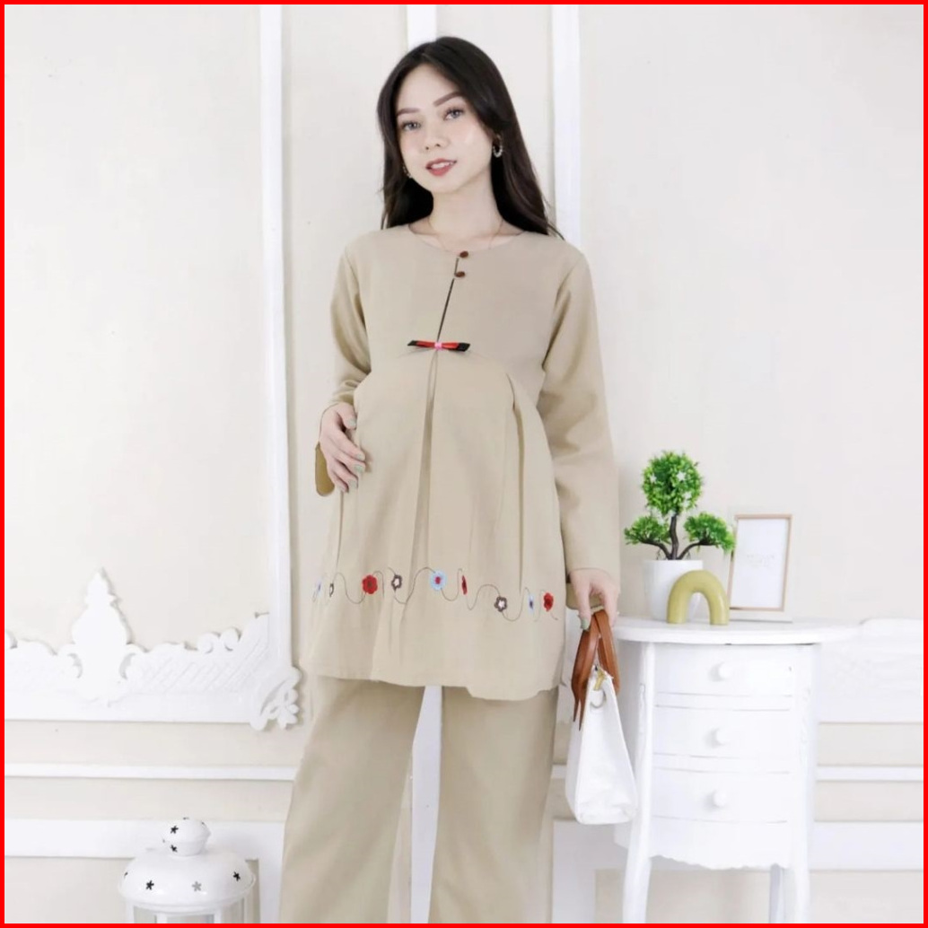 Baju Setelan Hamil Lengan Panjang Bahan Katun Adem