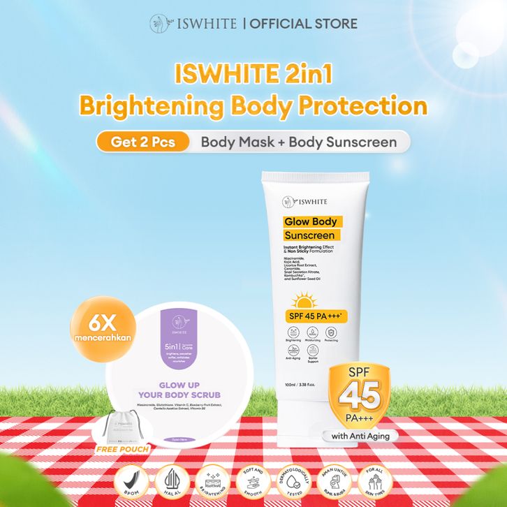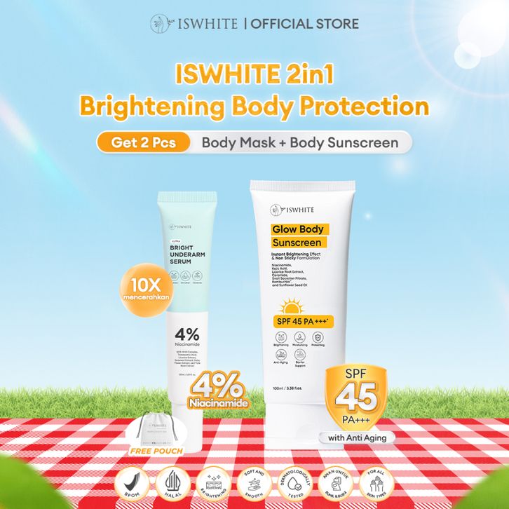 ISWHITE 2in1 Brightening Body Protection Bundling Series | Package Perawatan Kulit + Glow Body Sunsscreen