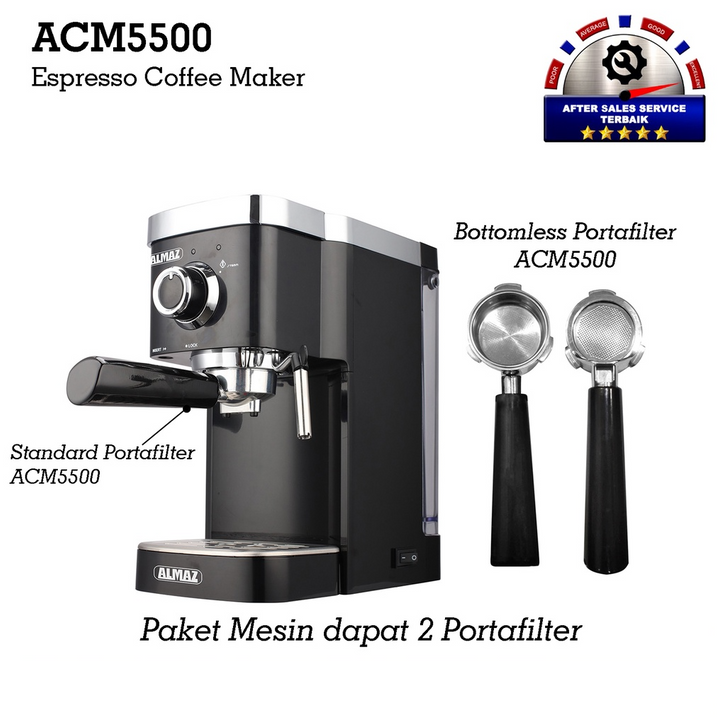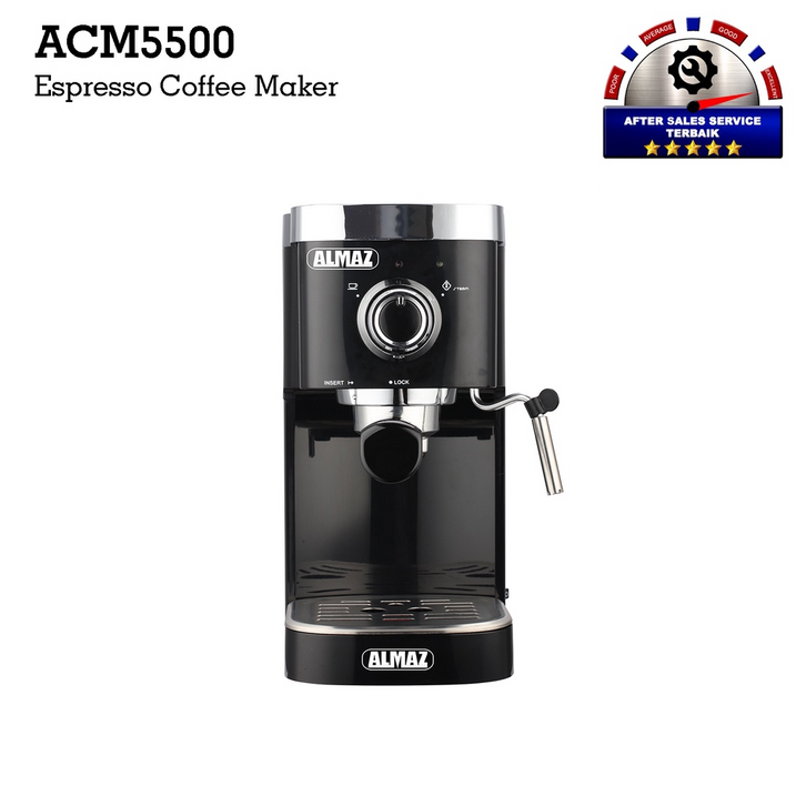 Mesin Kopi Espressp ALMAZ ACM5500 Original Black Alat Membuat Kopi Seduh 15 Bar Mesin Kopi Dan Pembuih Susu Warna Hitam