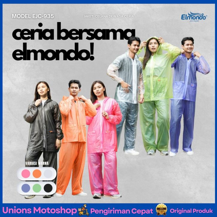Jas Hujan Elmondo Dewasa Pria Wanita Ponco Resleting Reflective Stripe RAINCOAT Murah