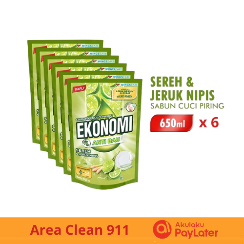 [ PAKET 6 PCS ] Sabun Cuci Piring Ekonomi Sereh & Jeruk Nipis Pouch 650 ml x 6