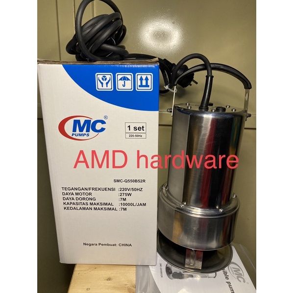 MC PUMP SMC-Q550B52R POMPA CELUP STAINLESS SUBMERSIBLE 275W 200W AUTO / MANUAL BISA AIR BERSIH & KOTOR WSD 8-8-0.37 Heav