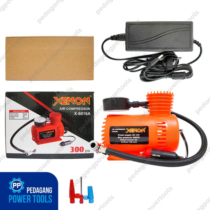 PROMO PAKET XENON KOMPRESOR ANGIN MINI POMPA BAN MOBIL & ADAPTOR 12V 5A