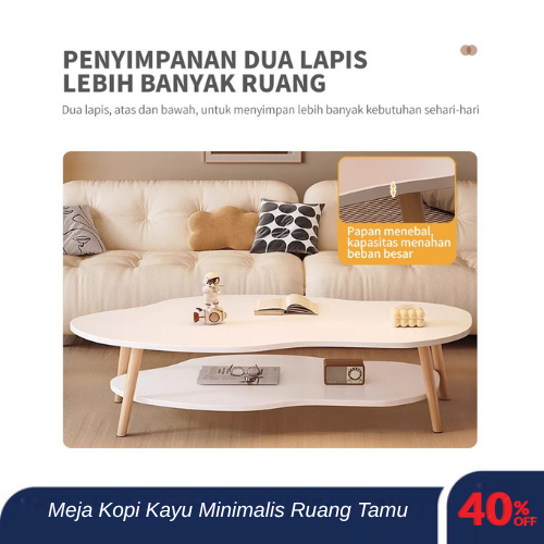 Meja Kopi Kayu Minimalis Ruang Tamu Lapisan Ganda Sederhana