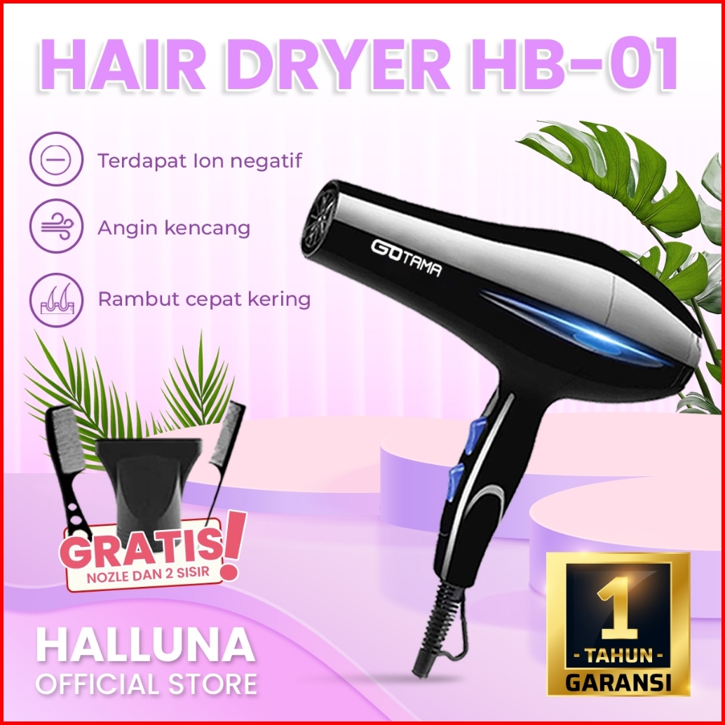 Hair Dryer Alat Pengering Rambut Warna Hitam Elegant Garansi Hb-01