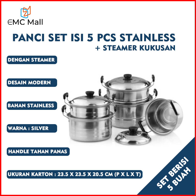 Emc Mall Panci Set Kingko 555 Stainless Isi 5 Set Steamer Panci 1 Set Panci Satu Set Panci 1 Set Panci Set Stainless