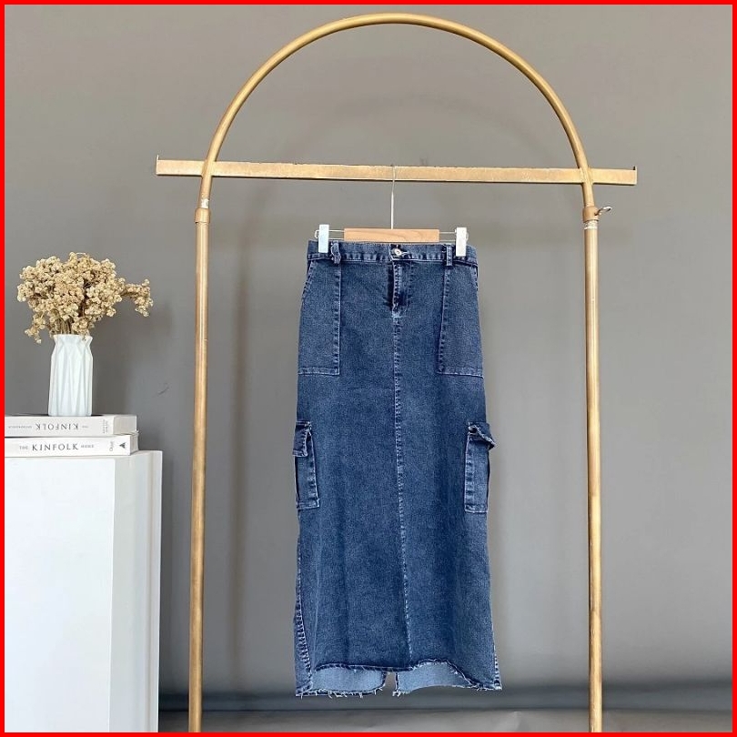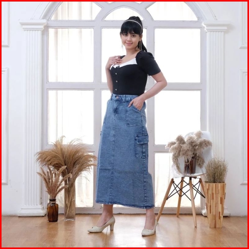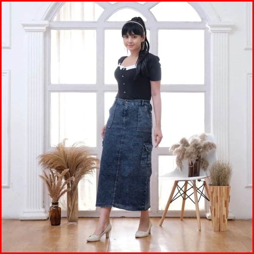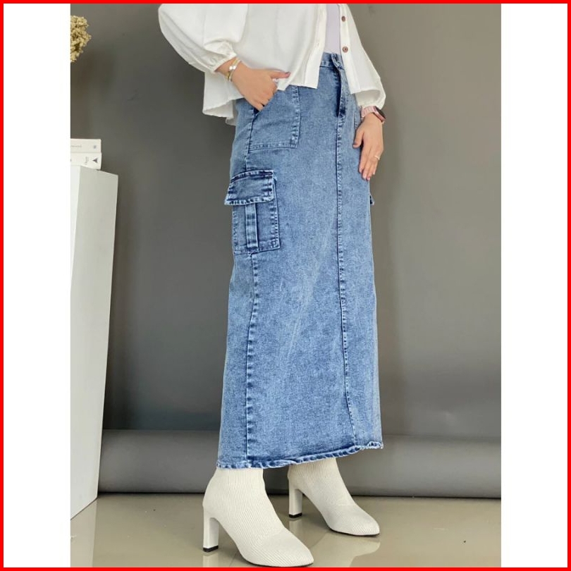 Rok Cargo Jeans Stretch Premium Rok Cargo Kekinian Belah Belakang Bahan Tebal Nyaman