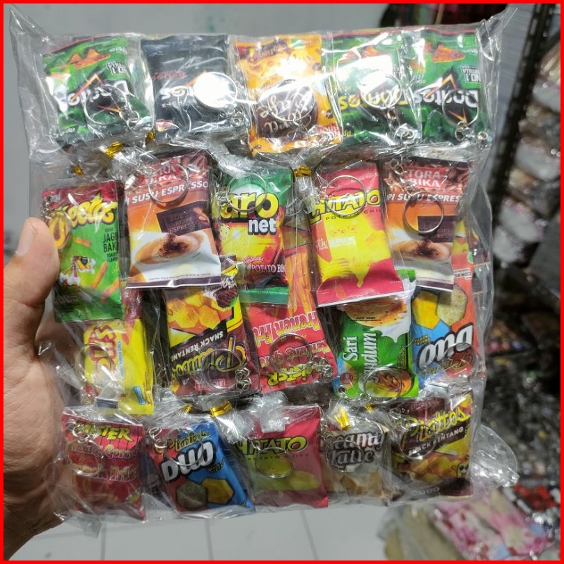 Isi 100 Pcs Souvenir Gantungan Kunci Replika Snack Kemasan Plastik Souvenir Pernikahan Ulang Tahun Khitanan Souvenir Ber