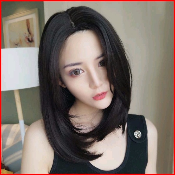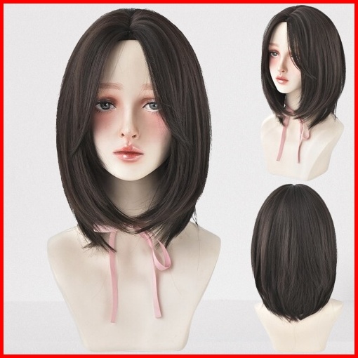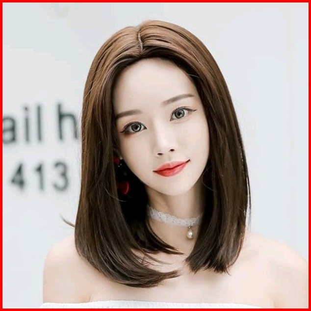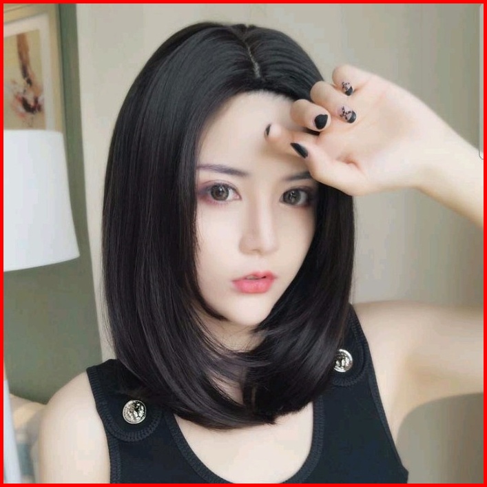 Wig Daily Wanita Lurus Sebahu Tanpa Poni Ww01