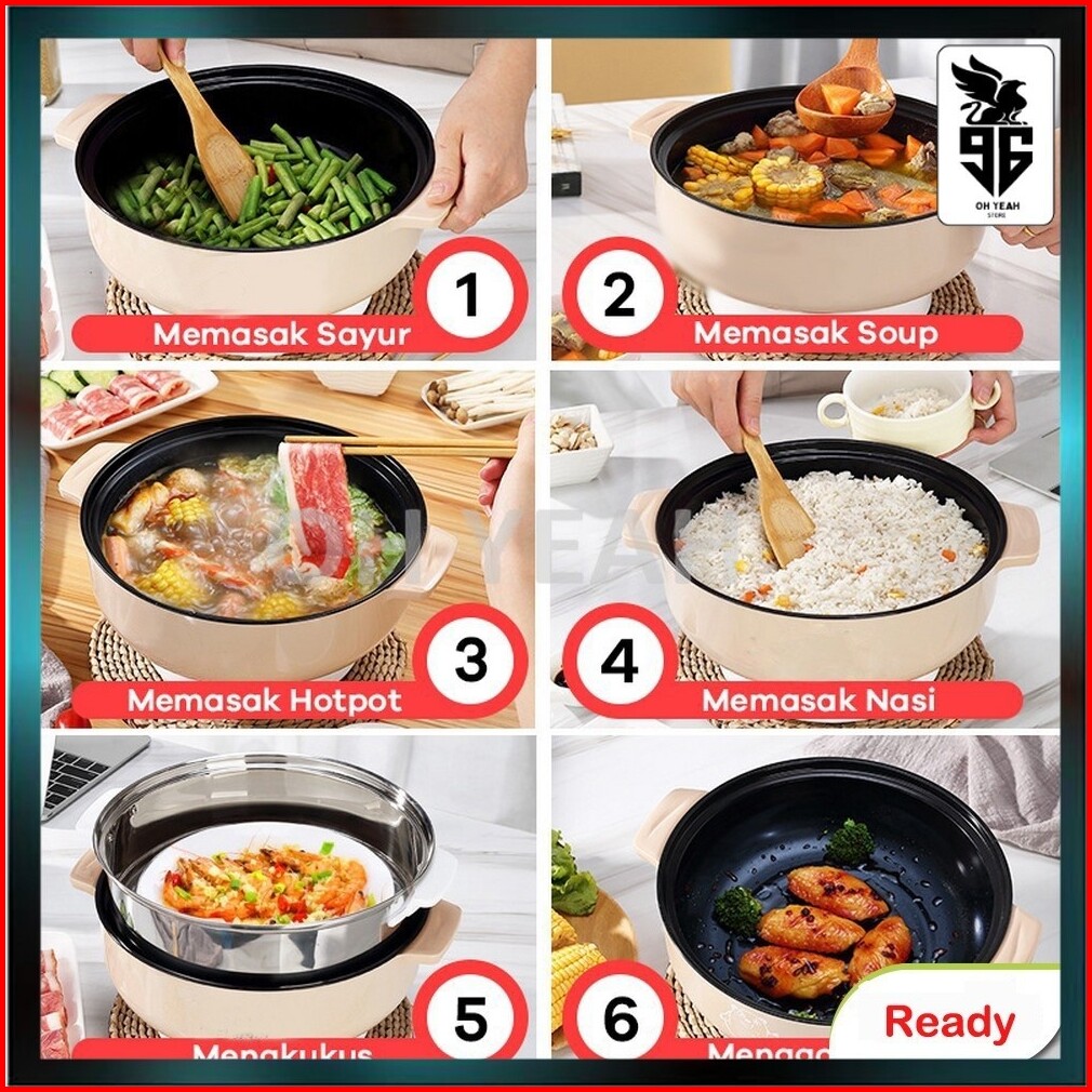 Panci Listrik Beruang Kuping Panci Hot Pot Multiguna Panci Elektrik Hemat Listrik Anti Lengket Multifungsi Fry Dan Steam