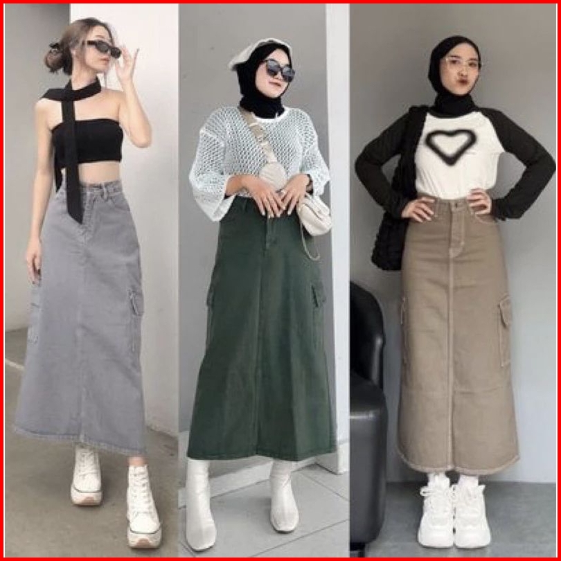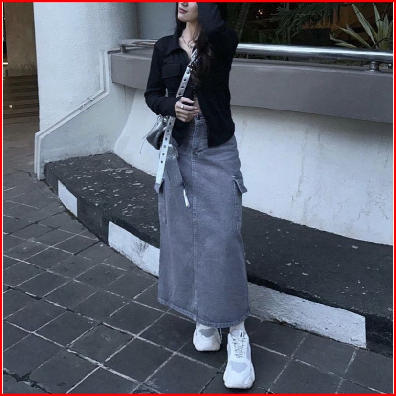 Rc07 - Rok Jeans Cargo Highwaist Wanita Korea Style