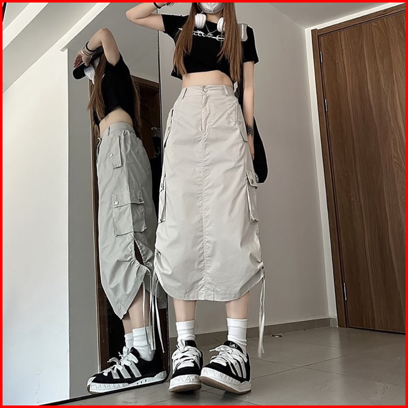 Rok Cargo Serut Wanita - Cargo Skirt Wanita Viral Bahan Premium Bisa Dijadikan 2 Model