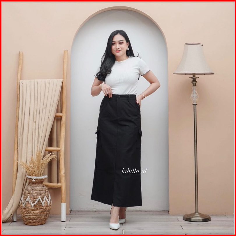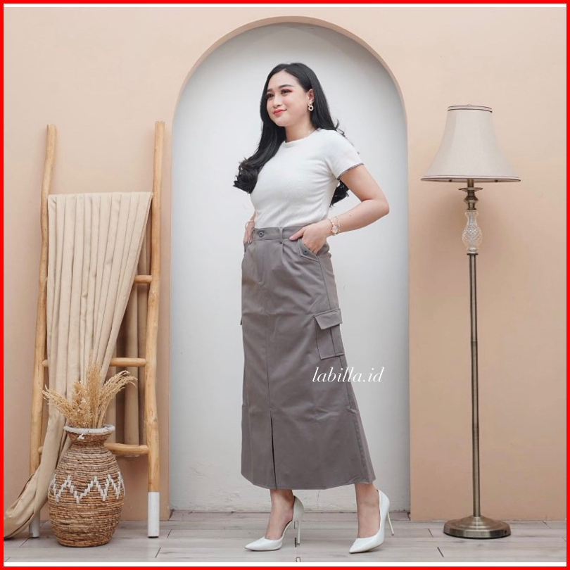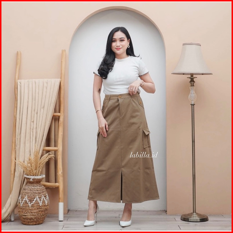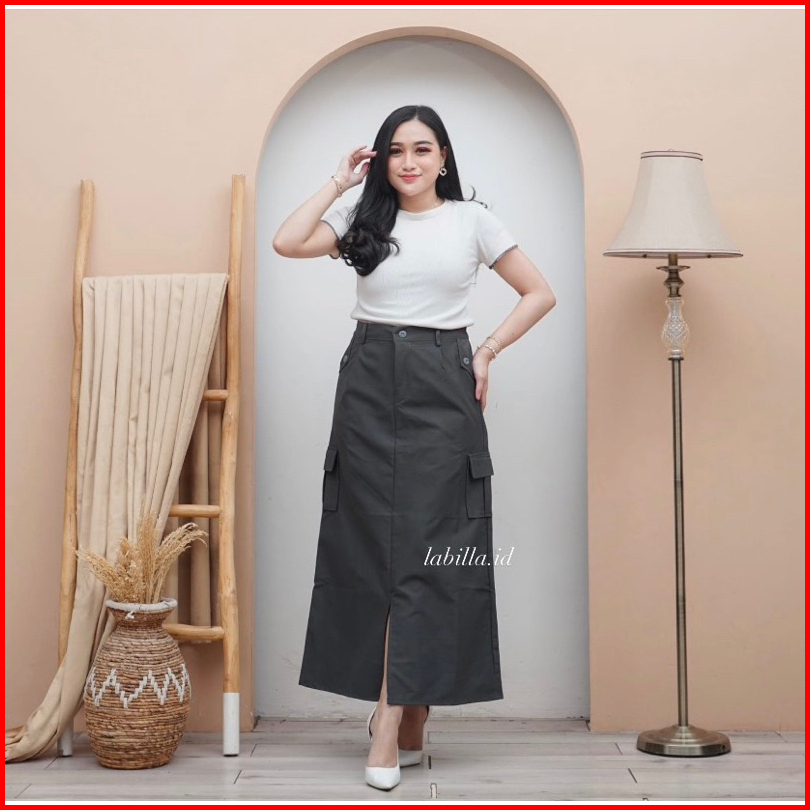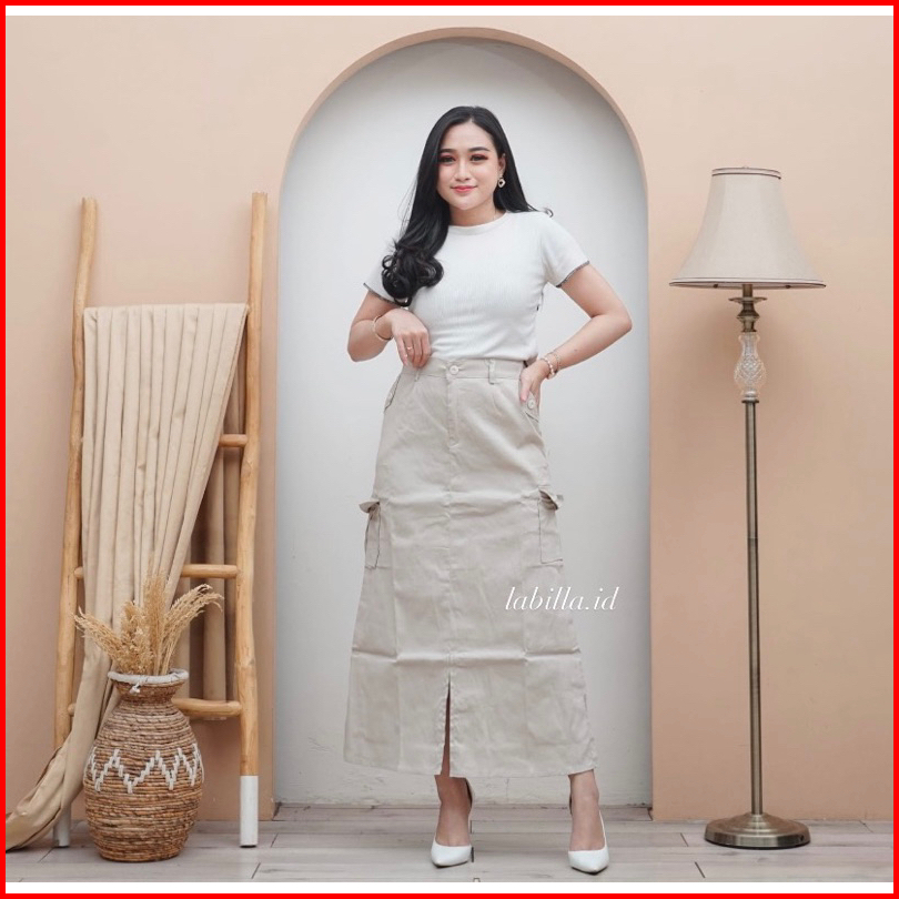 Rok Cargo Belah Twill Skirt Korean Style Wanita Kekinian