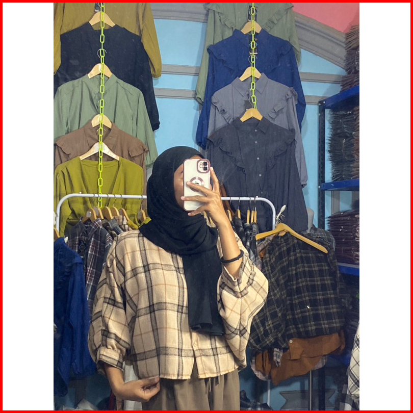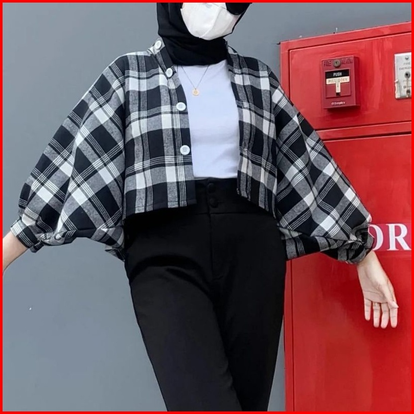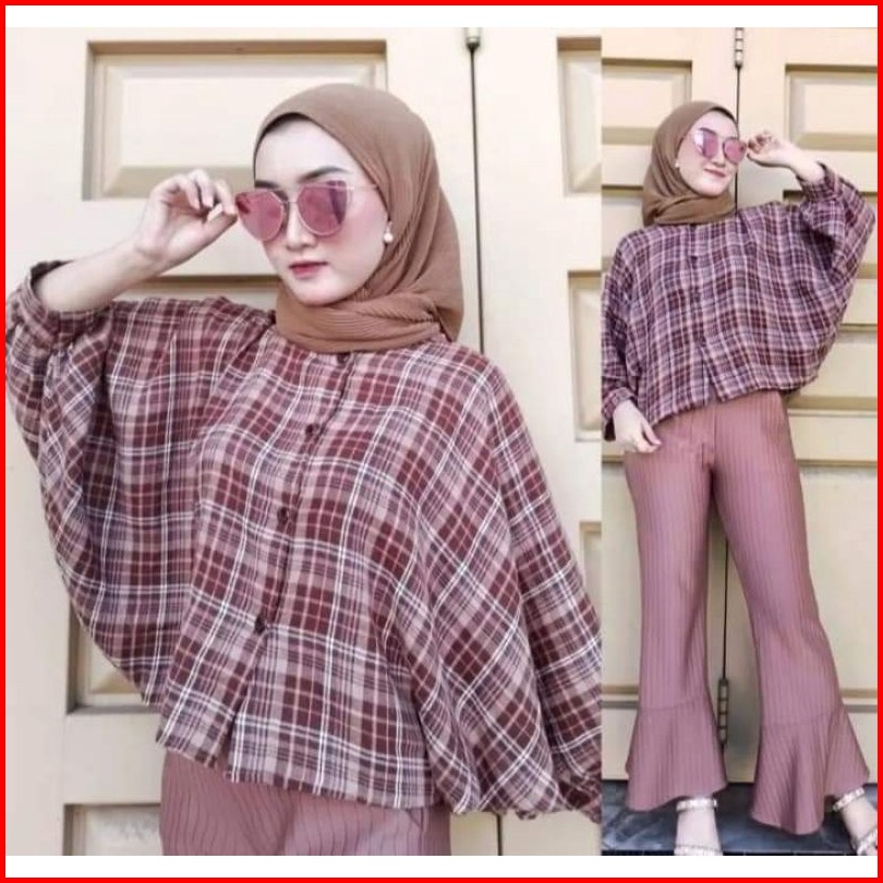 Kemeja Tamara Batwing Flanel Outer Kemeja Kotak Best Seller