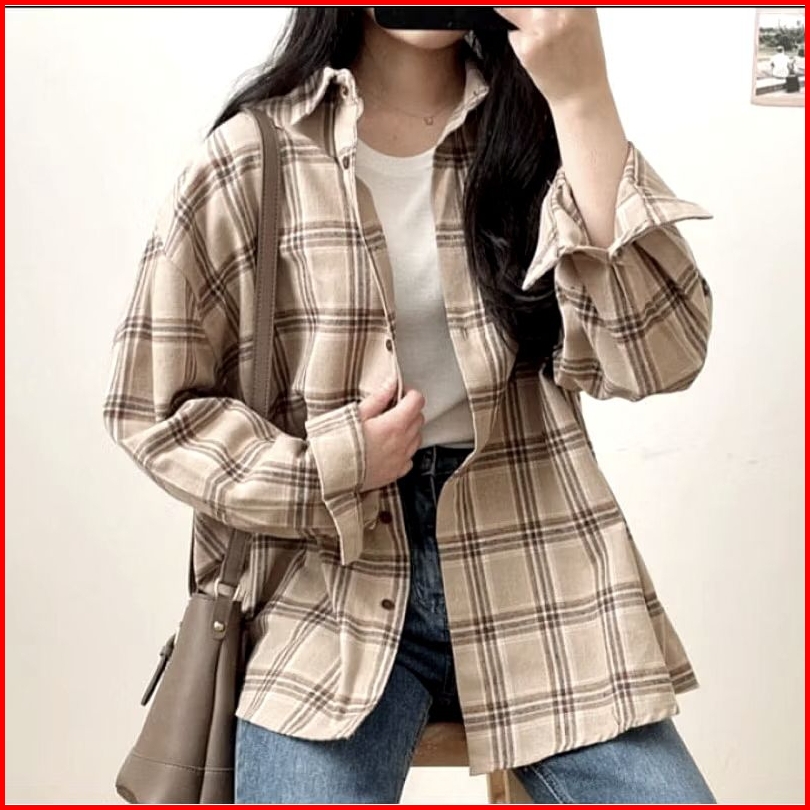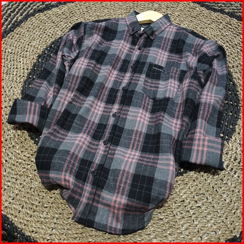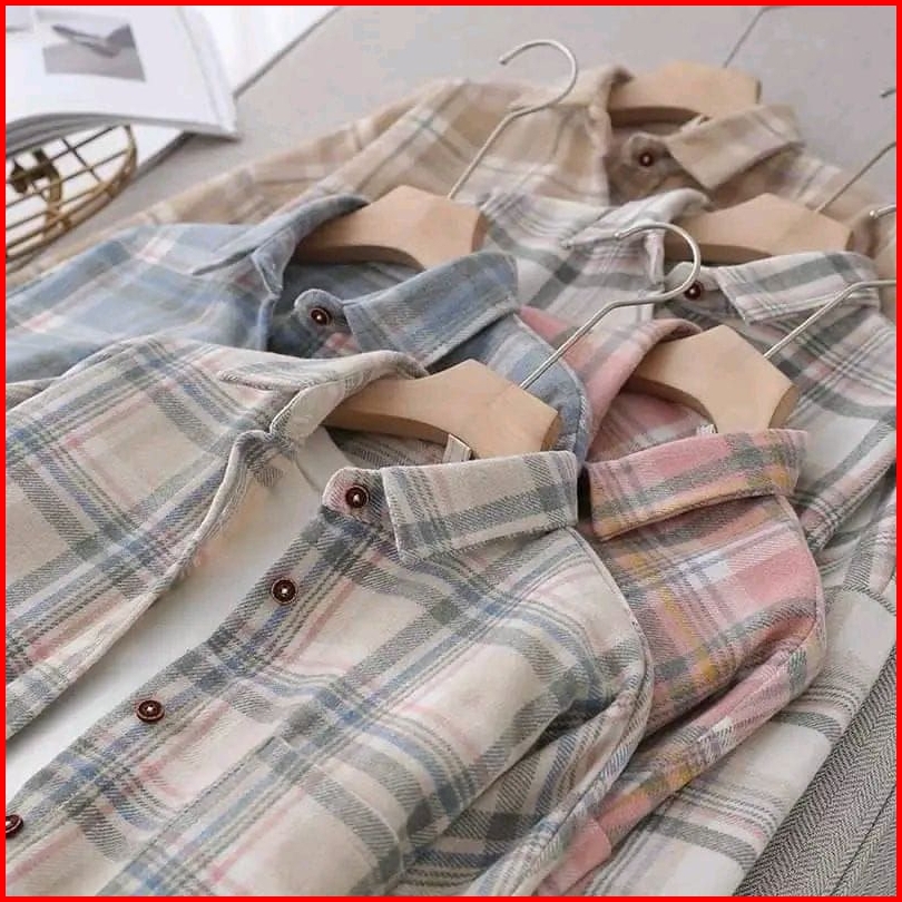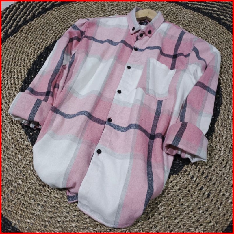 Flanel Wanita Panjang Atasan Unisek Kemeja Flannel Best Seller Pink