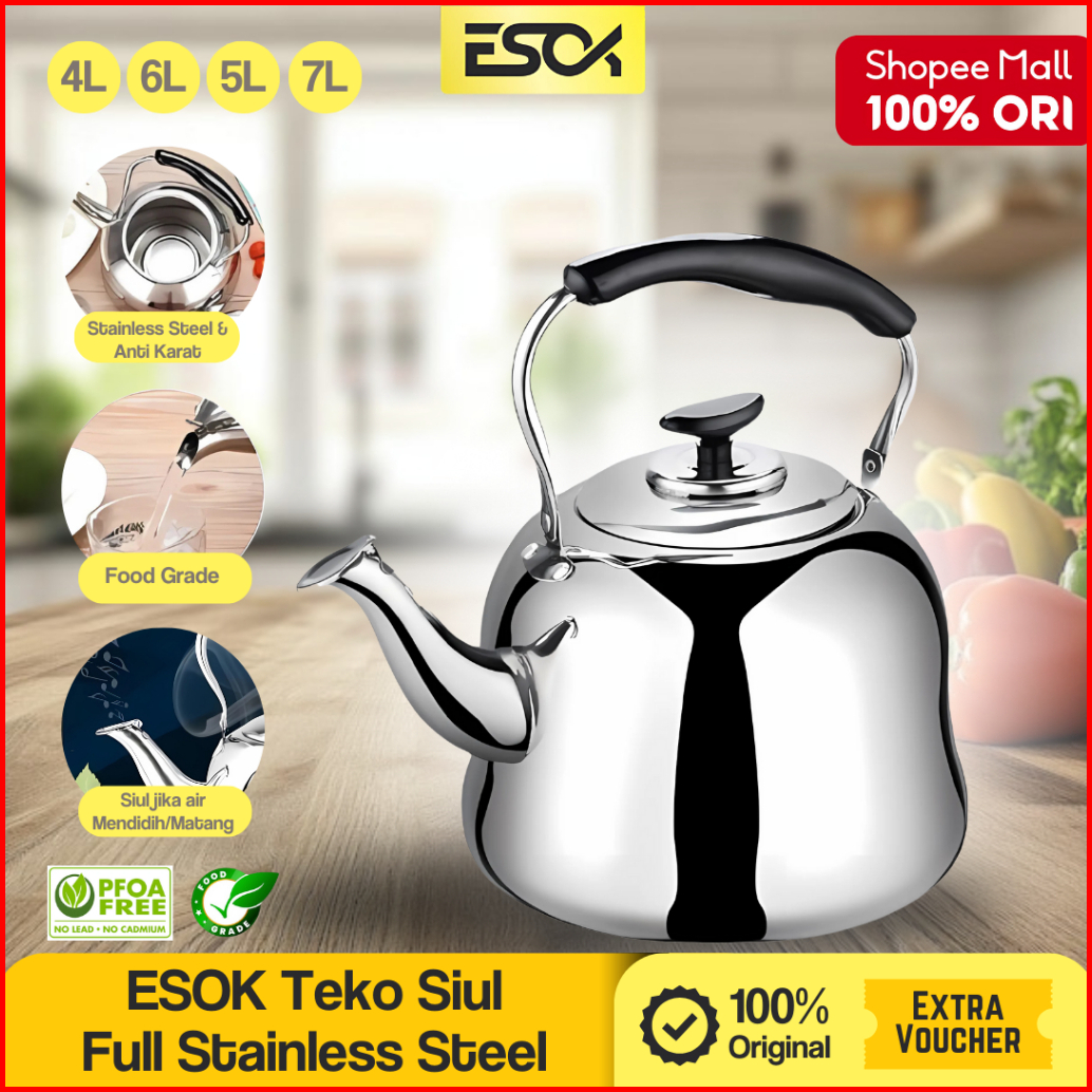 Esok Teko Siul Stainless Steel Kettle Whistling Teko Pemanas Air