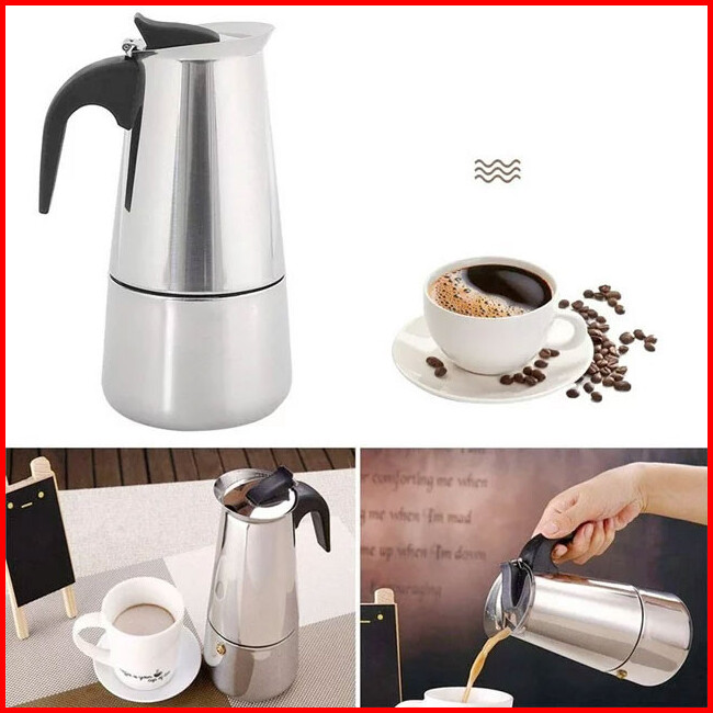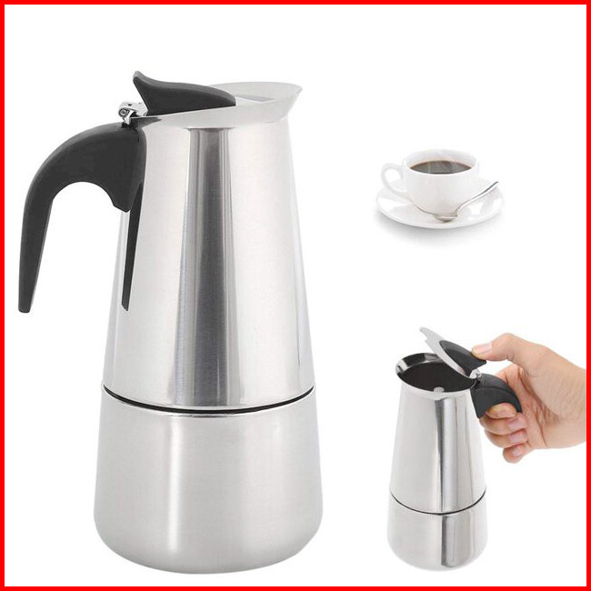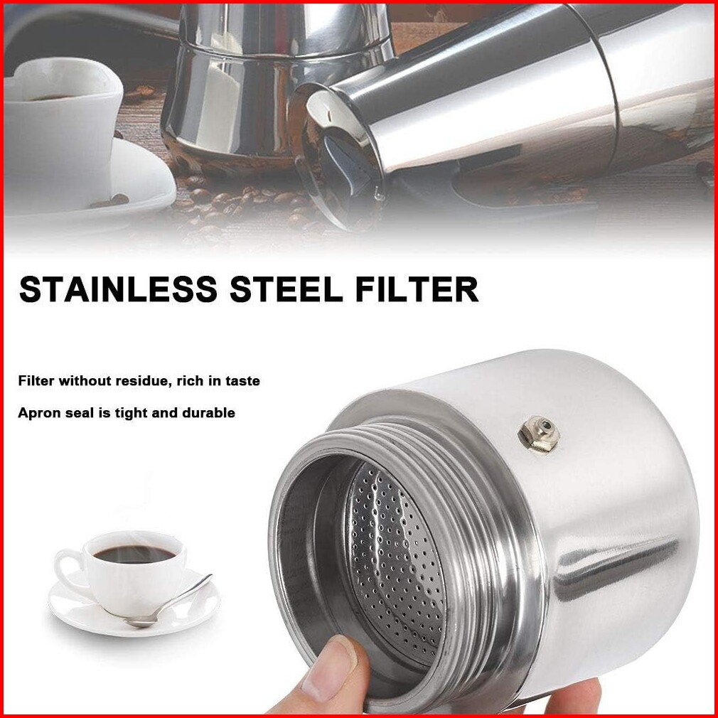 Moka Pot Teko Stovetop Filter - 6 Cup Coffee Maker Model Italy - Silver