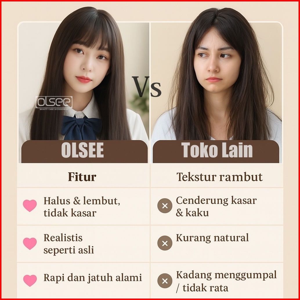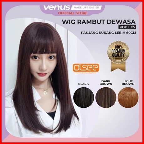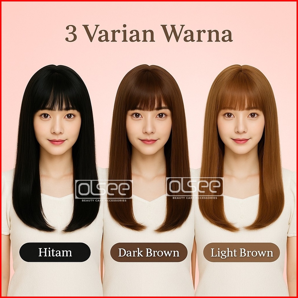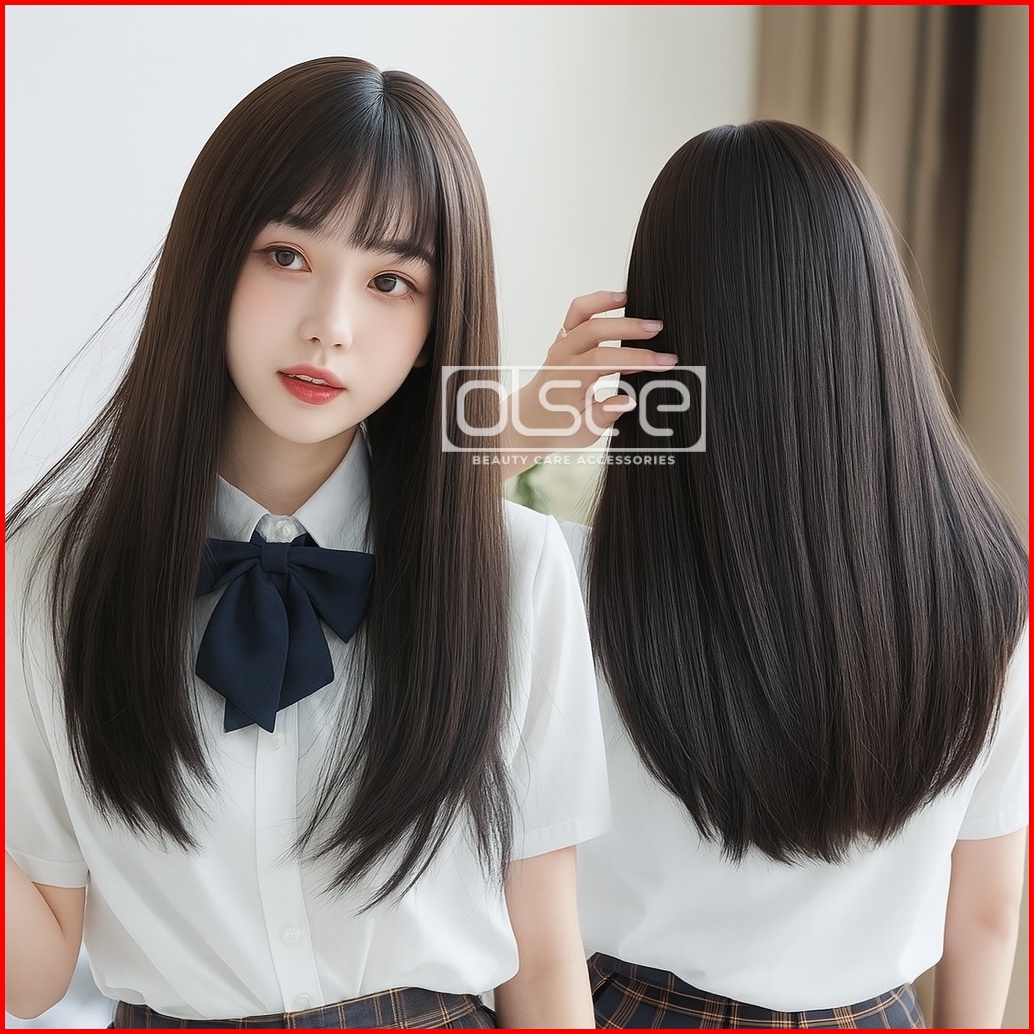 Olsee - Wig Rambut Palsu Lurus Poni Depan Full Lace Panjang Bergelombang Korean Look Wanita Dewasa C5 S697