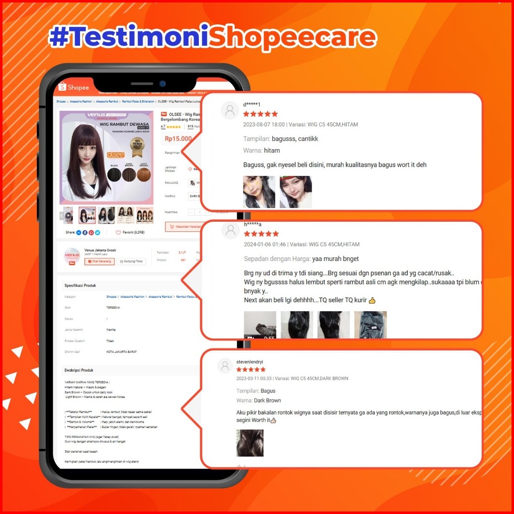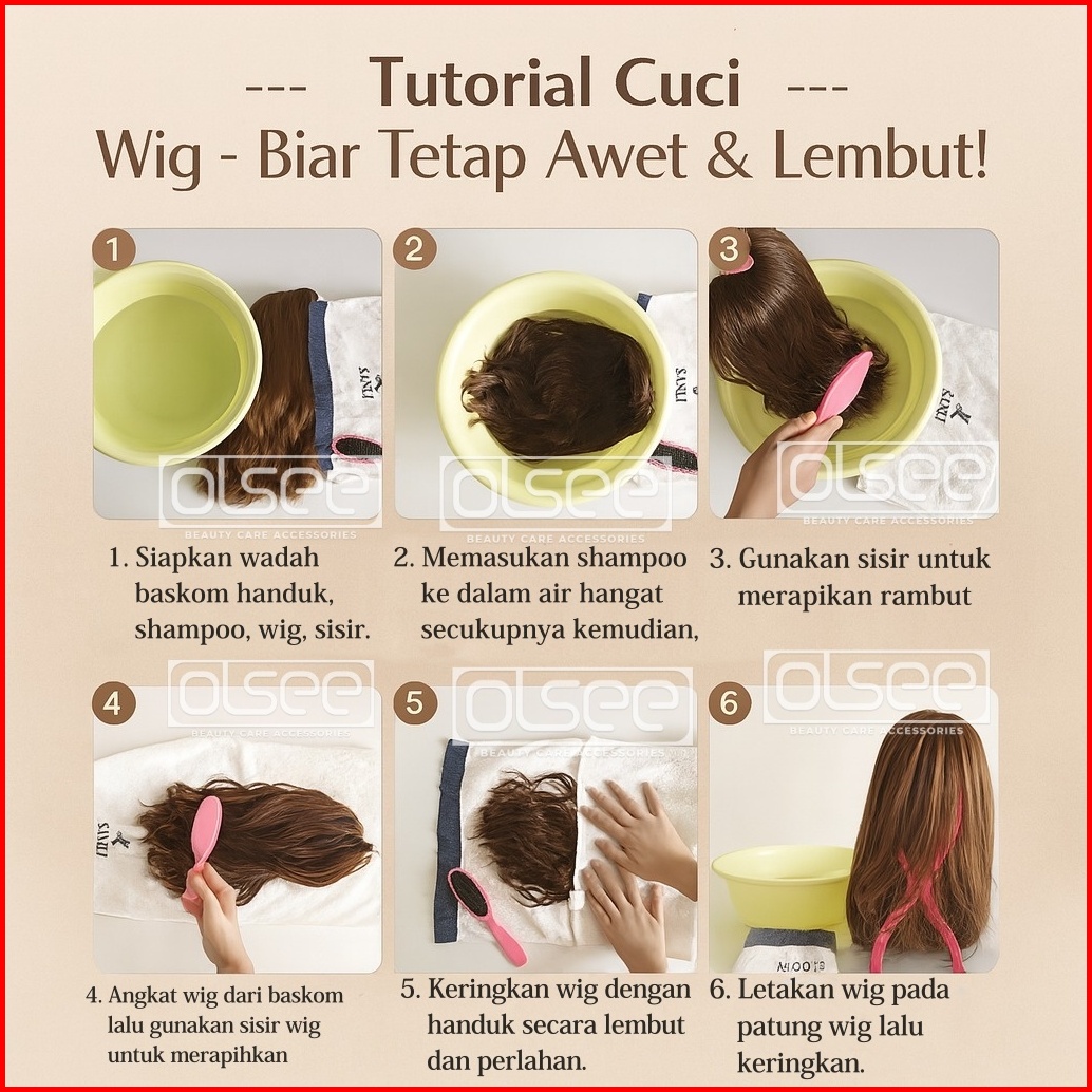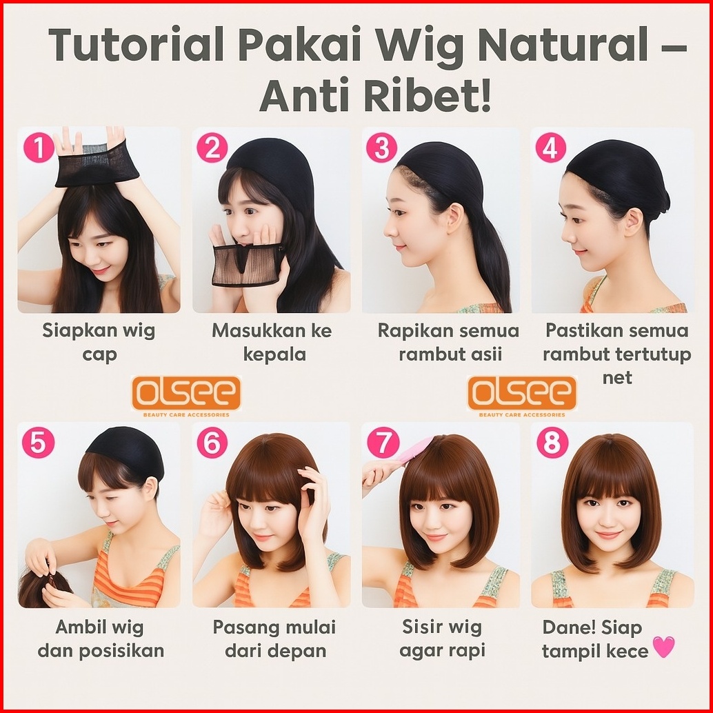 Olsee - Wig Rambut Palsu Lurus Poni Depan Full Lace Panjang Bergelombang Korean Look Wanita Dewasa C5 S697