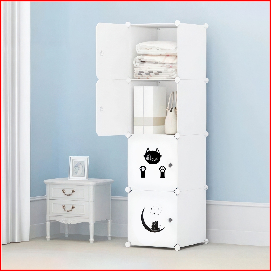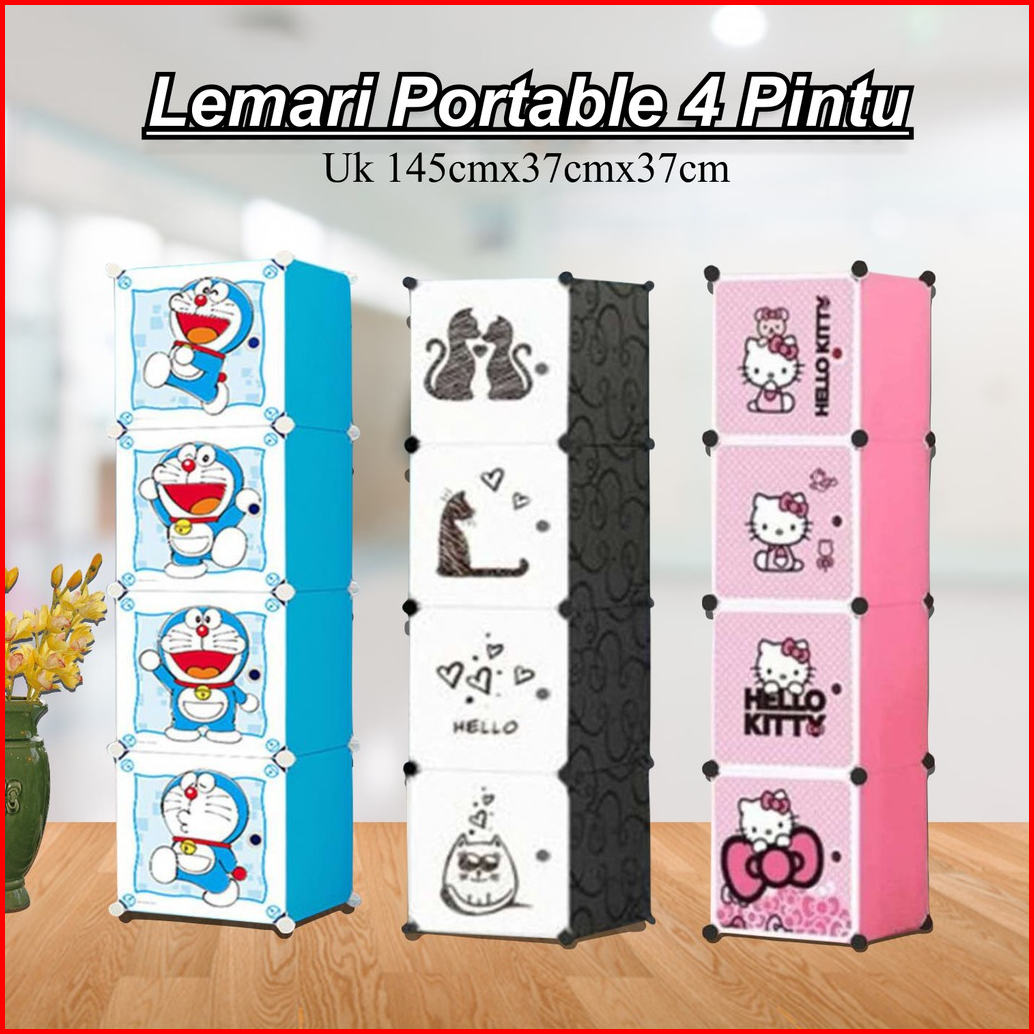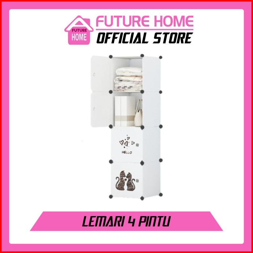 Fh8 Lemari Pakaian Plastik Portable 4 Pintu Lemari Serbaguna Lemari Hemat Tempat Lemari Multifungsi
