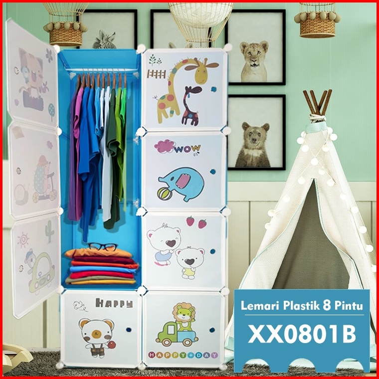 Lemari Pakaian Plastik 8 Pintu Rak Baju Wardrobe Serbaguna Dengan Ruang Gantung Pakaian Lemari Pakaian Portable Lemari P