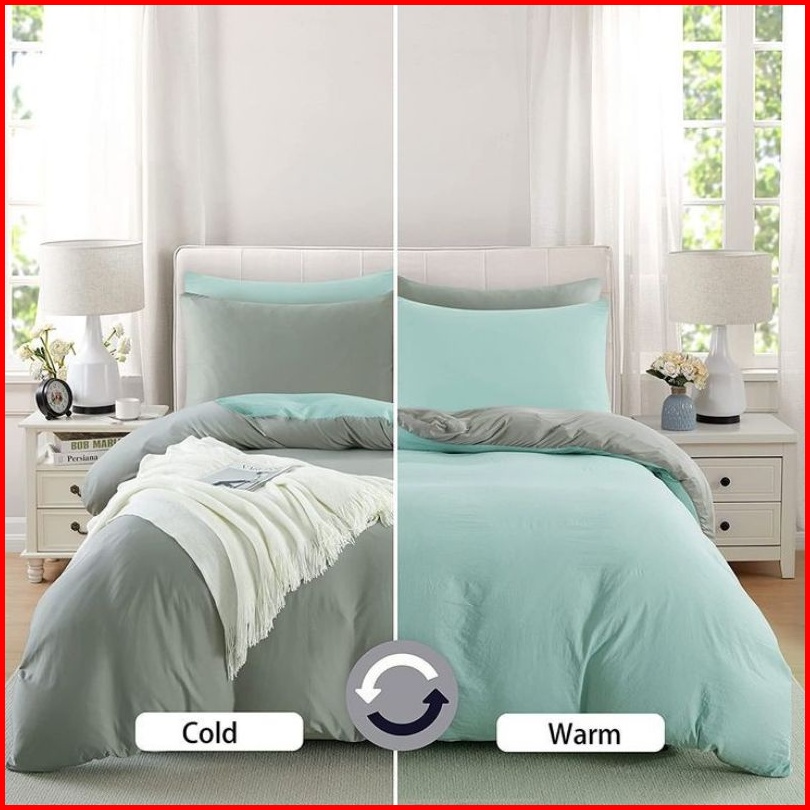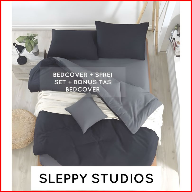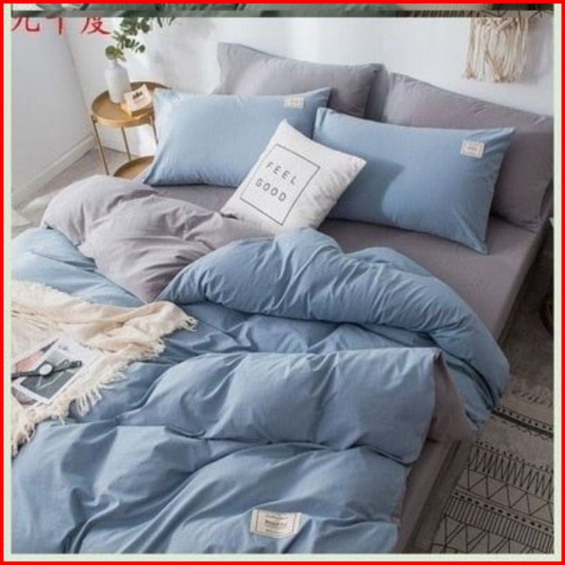 Bedcover Sprei Komplit 1 Set Two Tone Atau Mix Dua Warna Free Karet Anti Geser