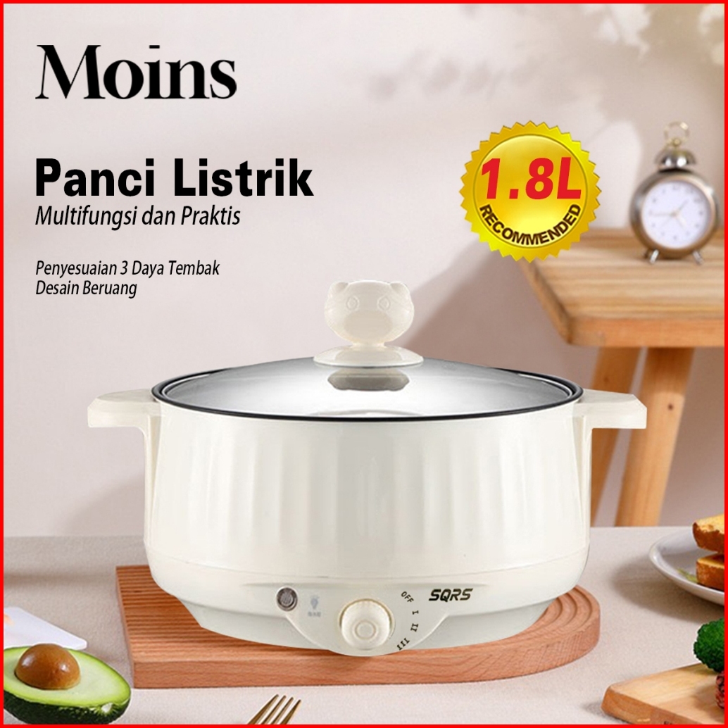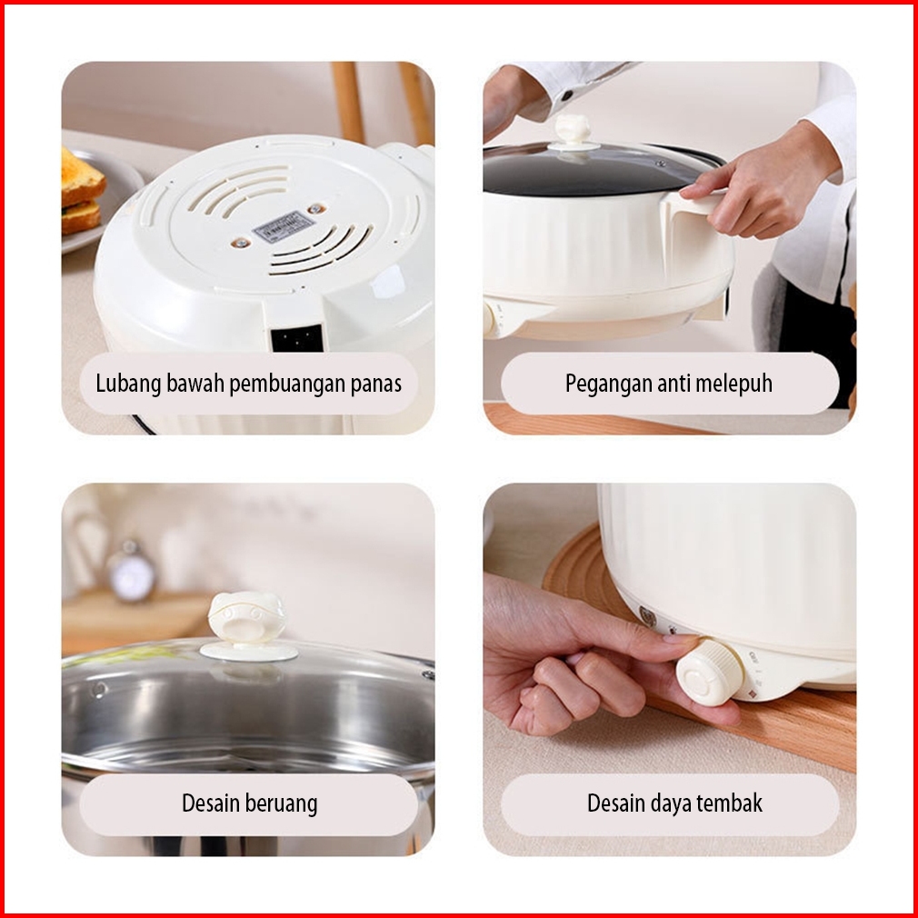 Panci Listrik Multifungsi 1.8l Anti Lengket Elektrik Wajan Listrik-desain Manik Beruang