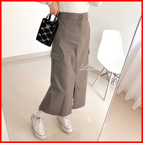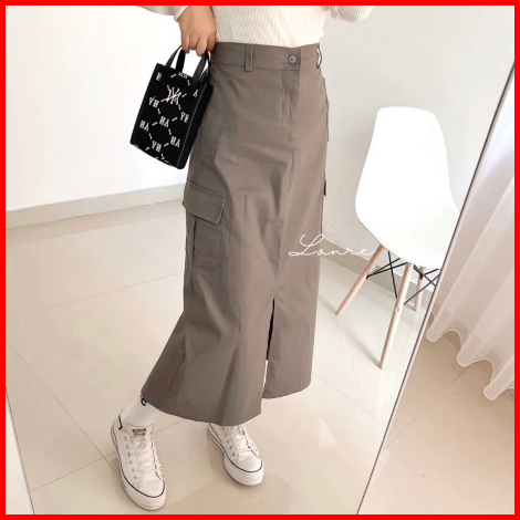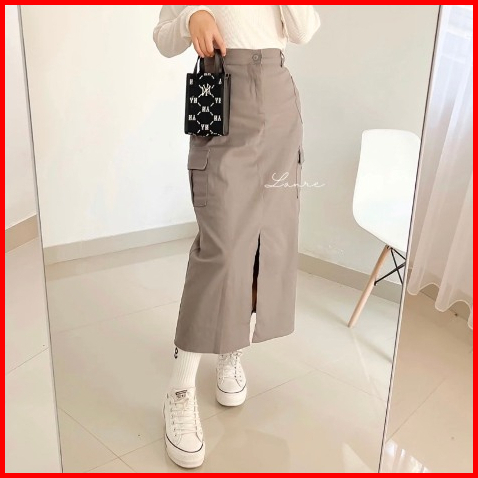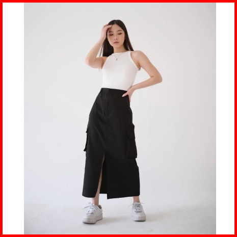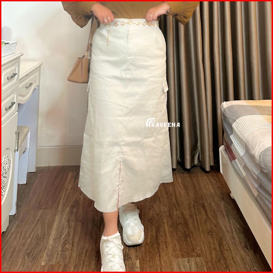 Raveena - Cargo Skirt - Rok Cargo Belah Korean Style Katun Twill Strecth