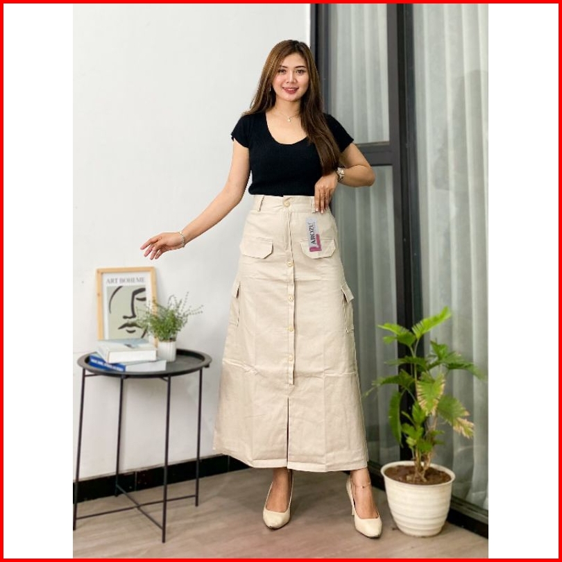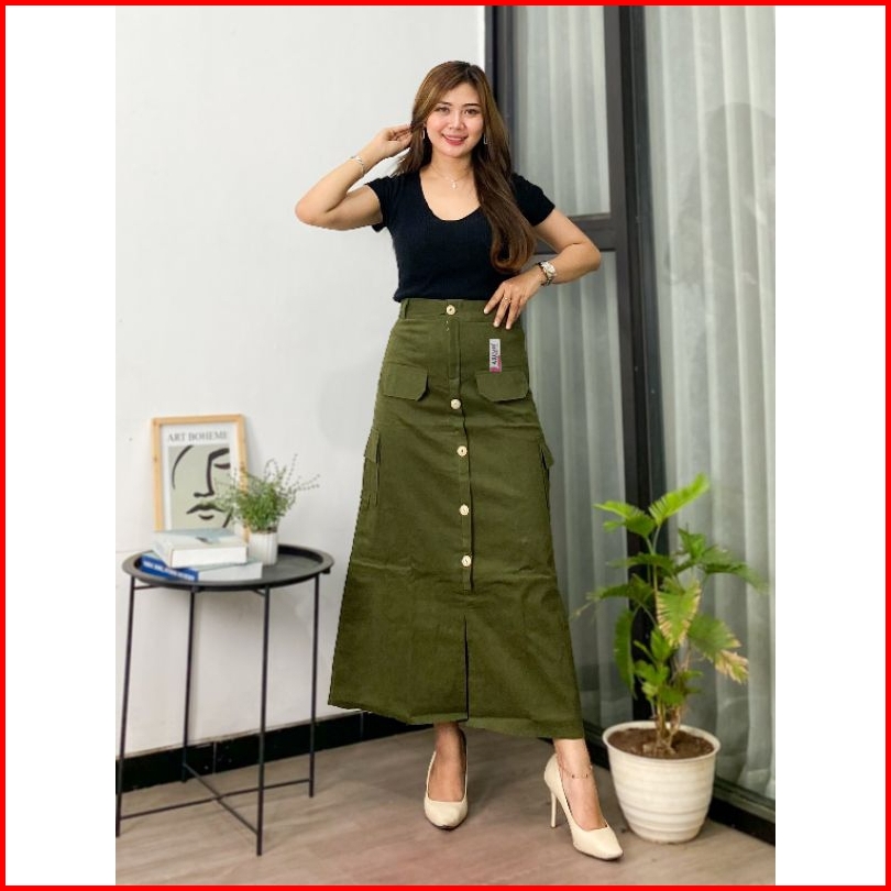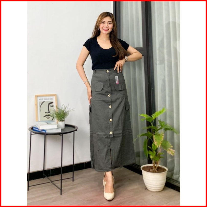 Rok Cargo Skirt Rok Cargo Kancing Rok Cargo Wanita